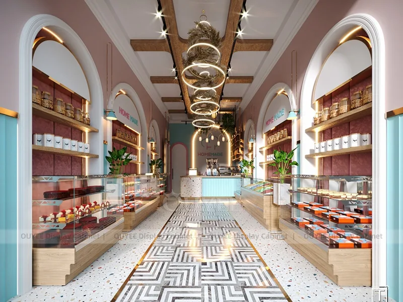 This product is suitable for bakery beverage shops, pastry counters, coffee-and-tea stores, and grab-and-go drink areas. It is a practical choice for new bubble tea shop openings, mall kiosk projects, cafe remodels, dessert shop counters, and franchise drink-store rollouts from a custom store fixture manufacturer.