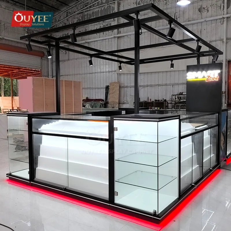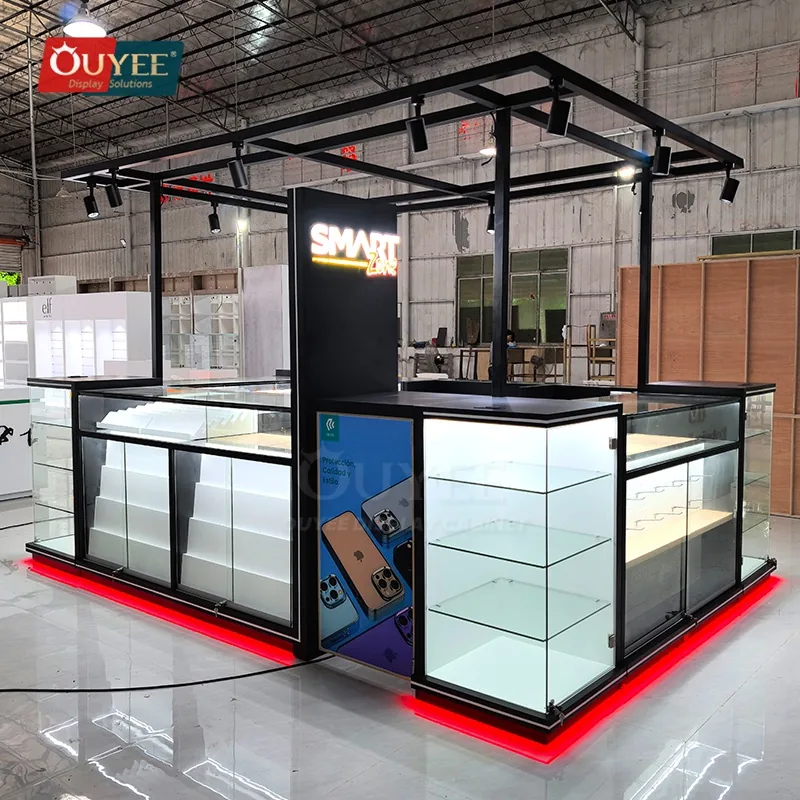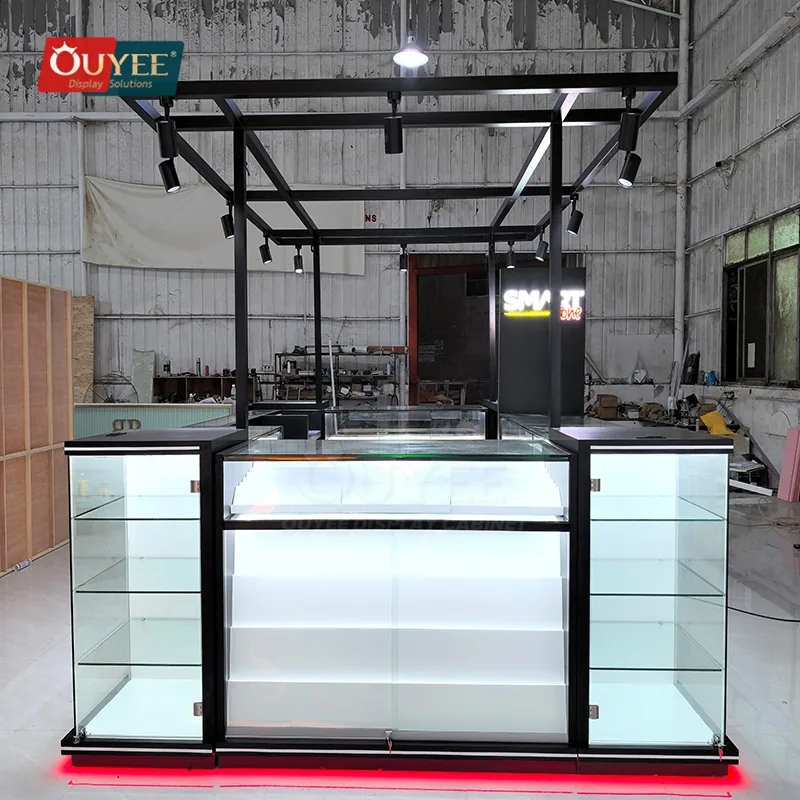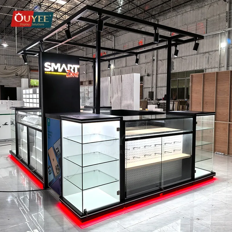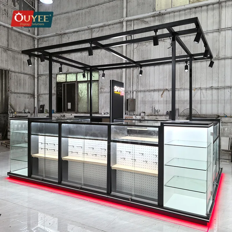The Black Framed Glass Showcase Kiosk with Canopy Lighting is designed for jewelry stores, accessory boutiques, lifestyle shops, and premium retail interiors that need a better balance between display security, visual order, and day-to-day selling practicality. For matching showcase references, you can explore our display cabinet page, browse display cases, and review OUYEE support on the manufacturing and materials pages.