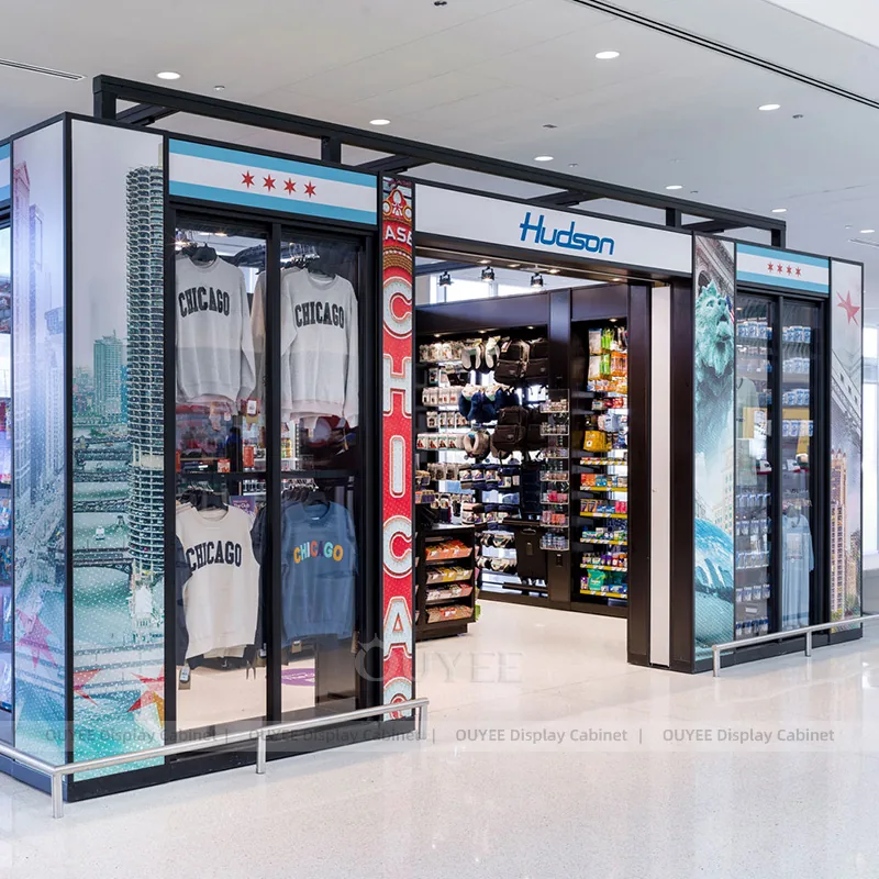 OUYEE can produce this model with powder-coated metal framing. Depending on the project, we can adjust dimensions, storage capacity, shelf depths, hanging components, branding graphics, and finish details so the system fits the real floor plan and product mix. Related inspiration is available across clothing racks, retail store display and our store fixture manufacturing service.