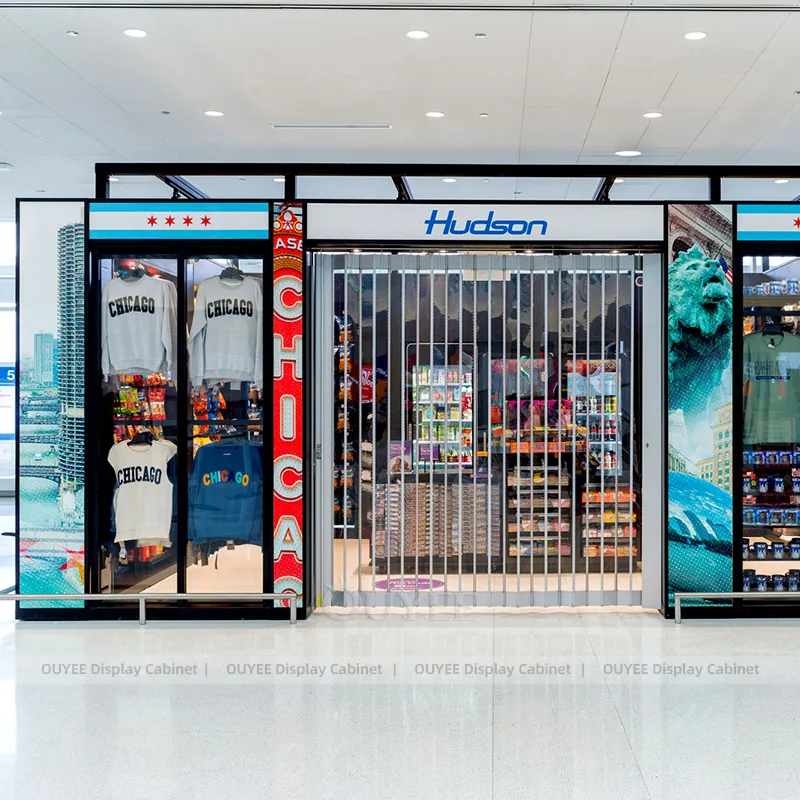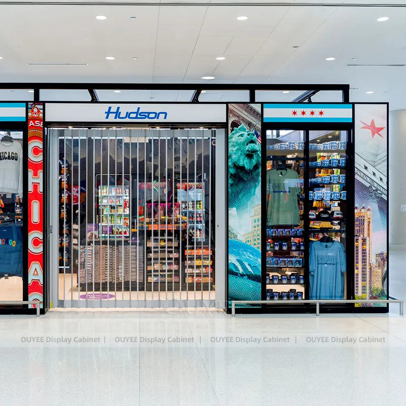 Style: Custom kiosk storefront system with integrated shelving, branding, and open customer access
