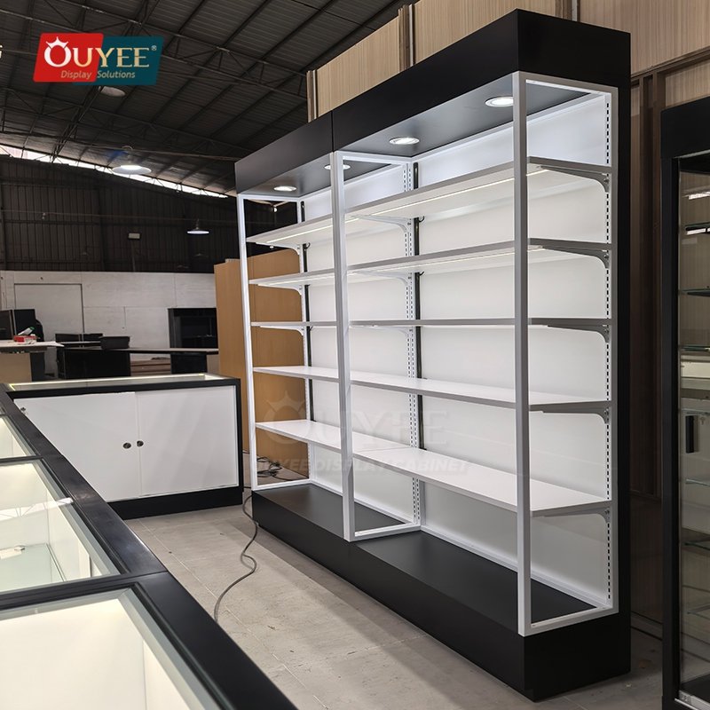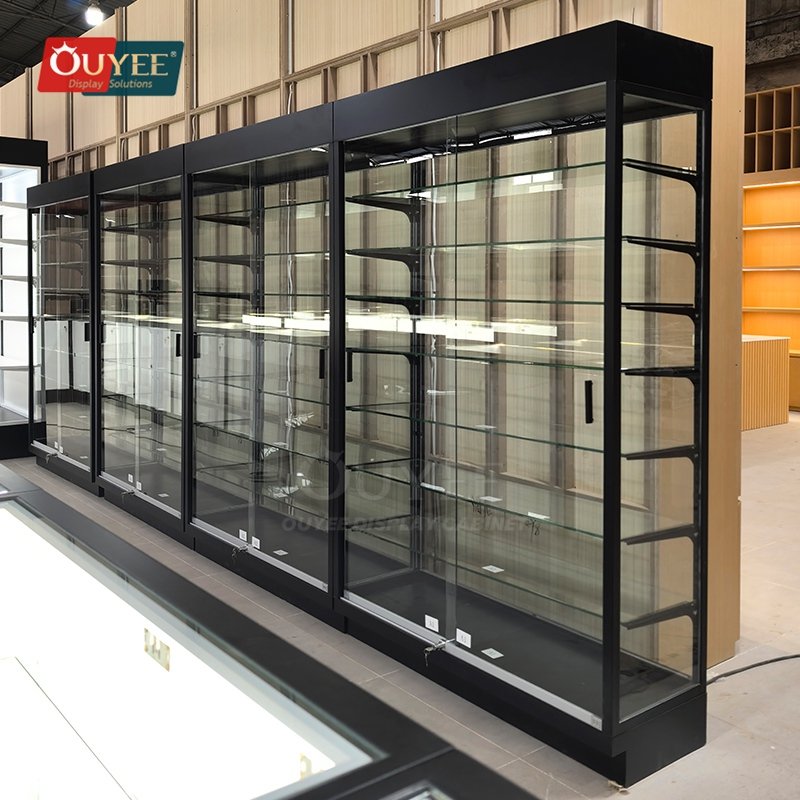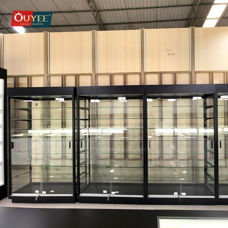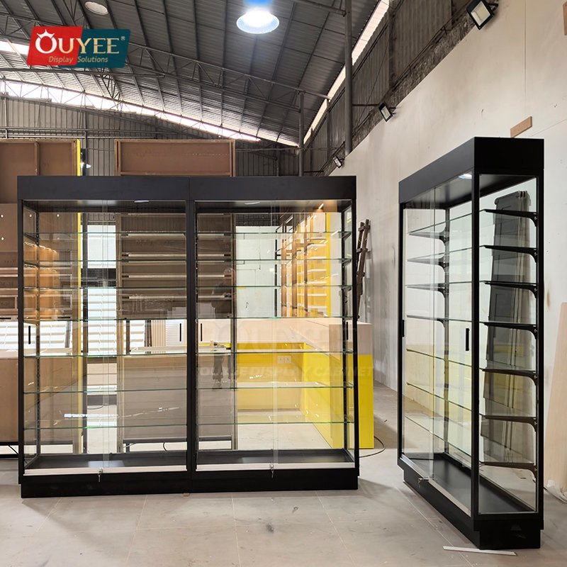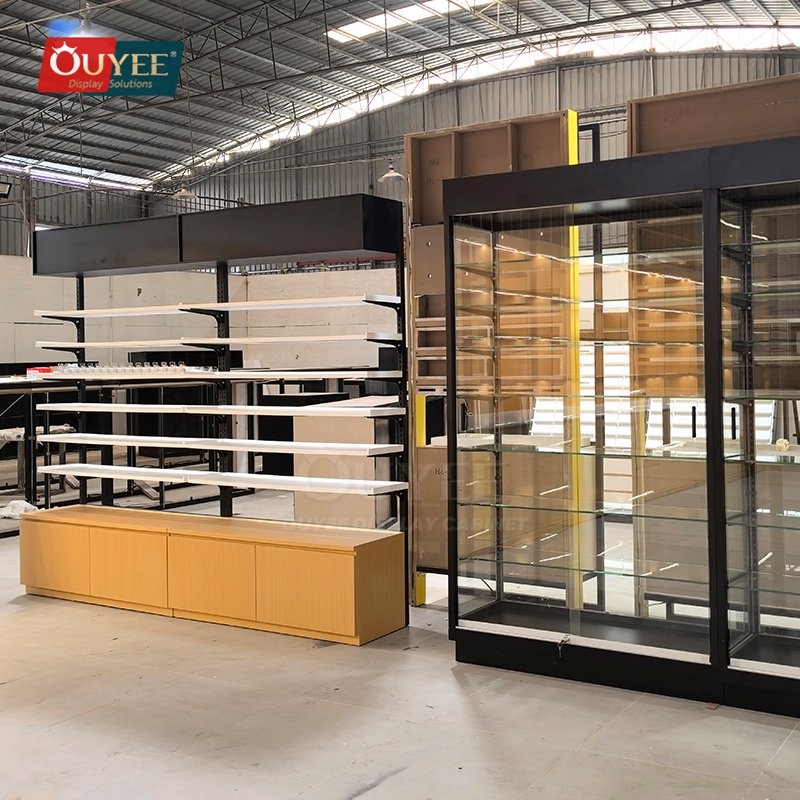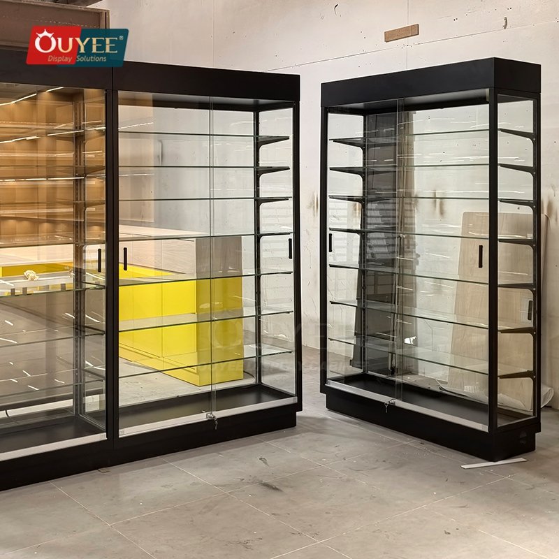Built with tempered glass, and metal framing, this custom display solution is made for long-term commercial use. OUYEE can adjust cabinet dimensions, shelf positions, lighting temperature, finish tones, storage modules, and logo details to match different retail concepts. If your project also needs related showcase ideas, you can browse our glass display cabinet and display cases pages for more references.