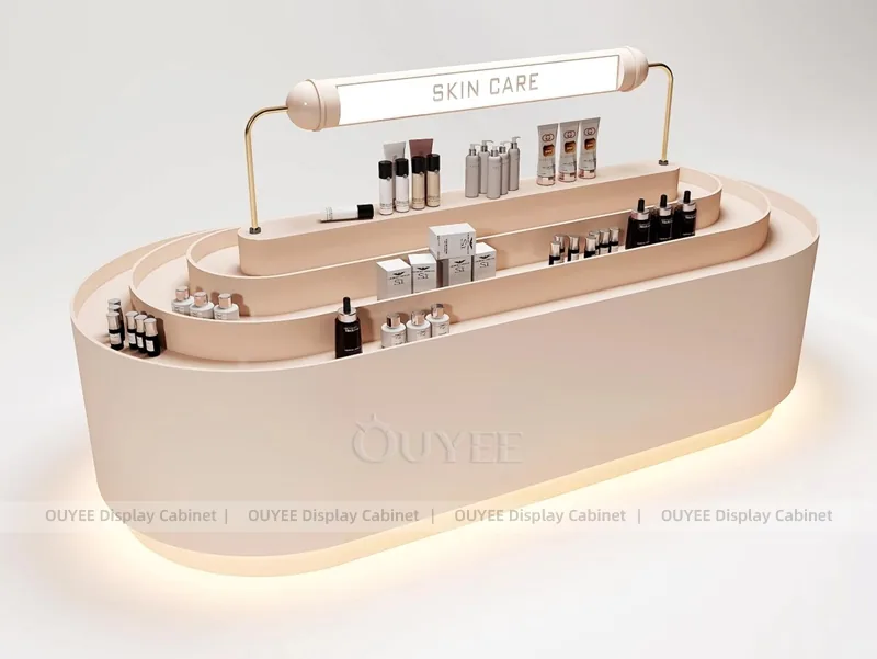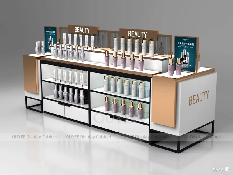 This configuration works well for cosmetic shops, makeup boutiques, beauty chain stores, department-store counters, and branded retail interiors. It is suitable for cosmetic store openings, beauty shop renovations, department-store counter upgrades, pop-up retail projects, and custom display fixture programs that need consistent production quality.