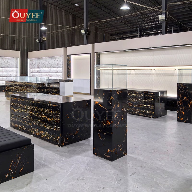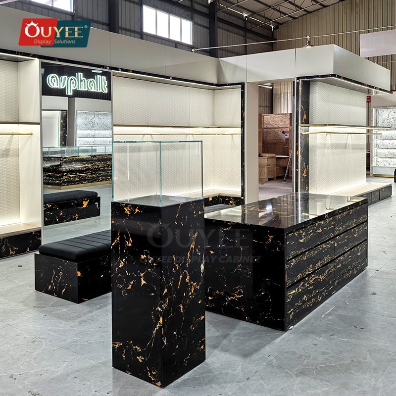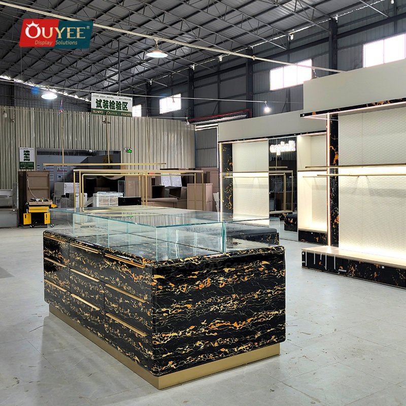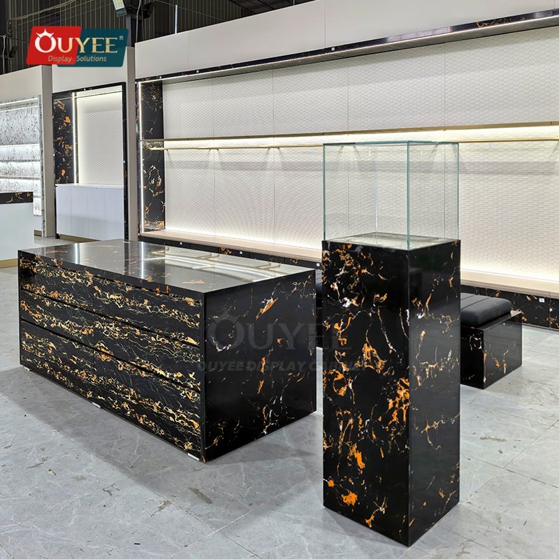 The Black Marble Retail Counter Display Stand is designed for brand counters, checkout zones, popup shops, and service-led retail spaces that want a better balance between fixture capacity, visual order, and commercial practicality. As a tailored display stand, it works for both one-off boutique projects and repeated rollout programs. For similar fixture references, you can visit our display shelves page, browse more store shelving displays, and review OUYEE production support on the manufacturing and materials pages.