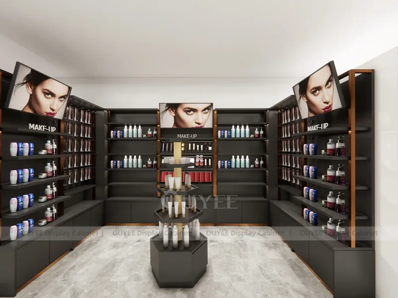 This configuration works well for cosmetic shops, makeup boutiques, beauty chain stores, department-store counters, and branded retail interiors. It is suitable for cosmetic store openings, beauty shop renovations, department-store counter upgrades, pop-up retail projects, and custom display fixture programs that need consistent production quality.