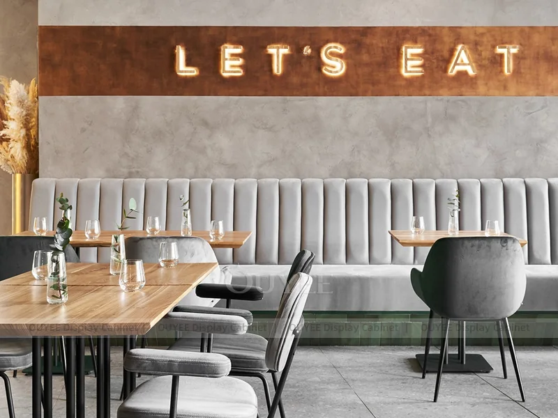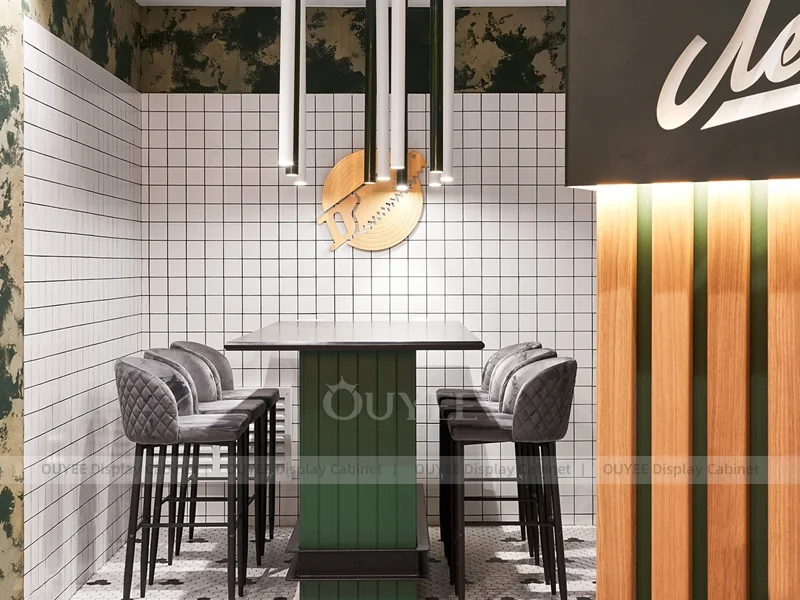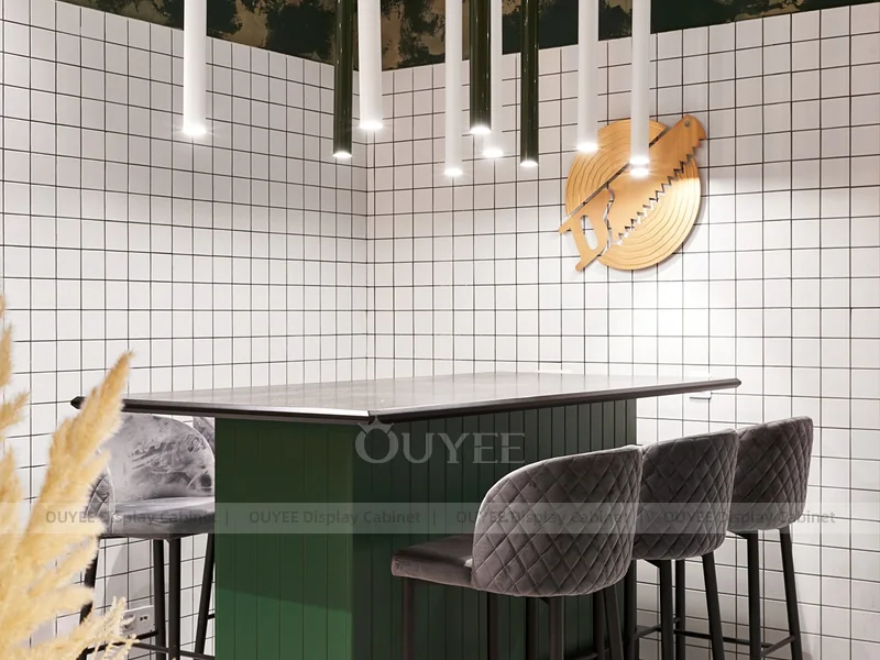 OUYEE supports coffee counter design, shop drawings, material selection, manufacturing, packing, and export delivery. We can customize the fixture according to your brand color, logo, store size, electrical planning, and installation requirements.