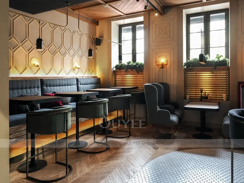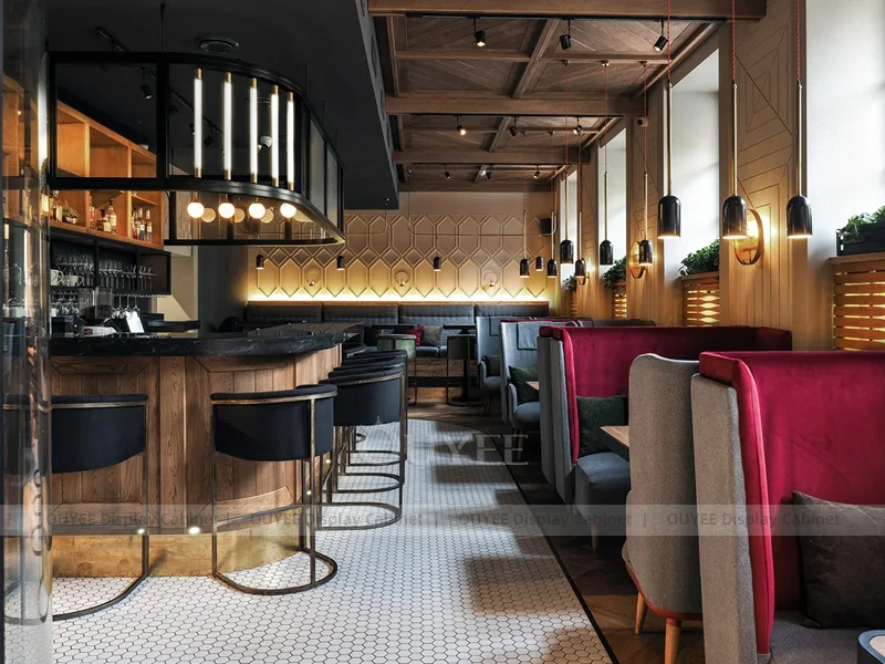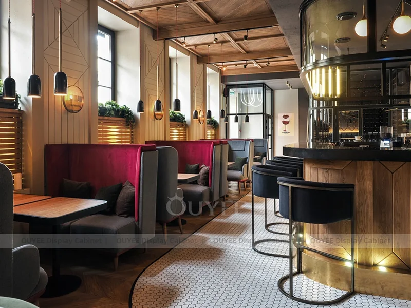 OUYEE supports coffee counter design, shop drawings, material selection, manufacturing, packing, and export delivery. We can customize the fixture according to your brand color, logo, store size, electrical planning, and installation requirements.