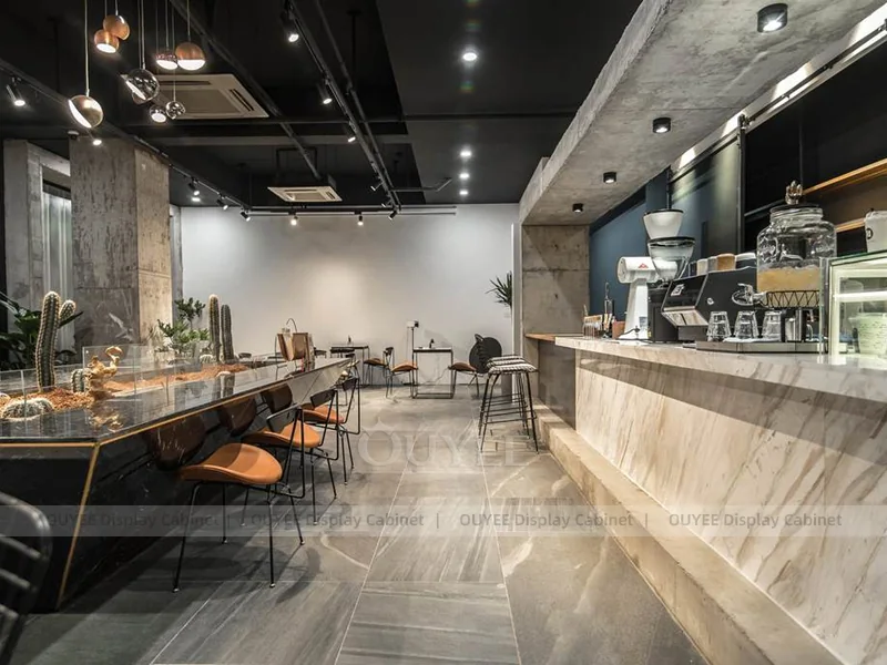 OUYEE supports coffee counter design, shop drawings, material selection, manufacturing, packing, and export delivery. We can customize the fixture according to your brand color, logo, store size, electrical planning, and installation requirements.