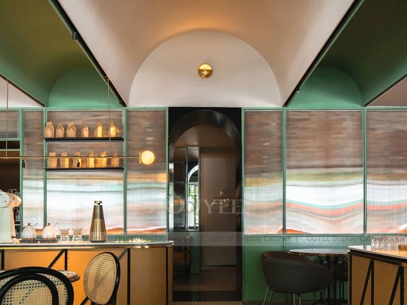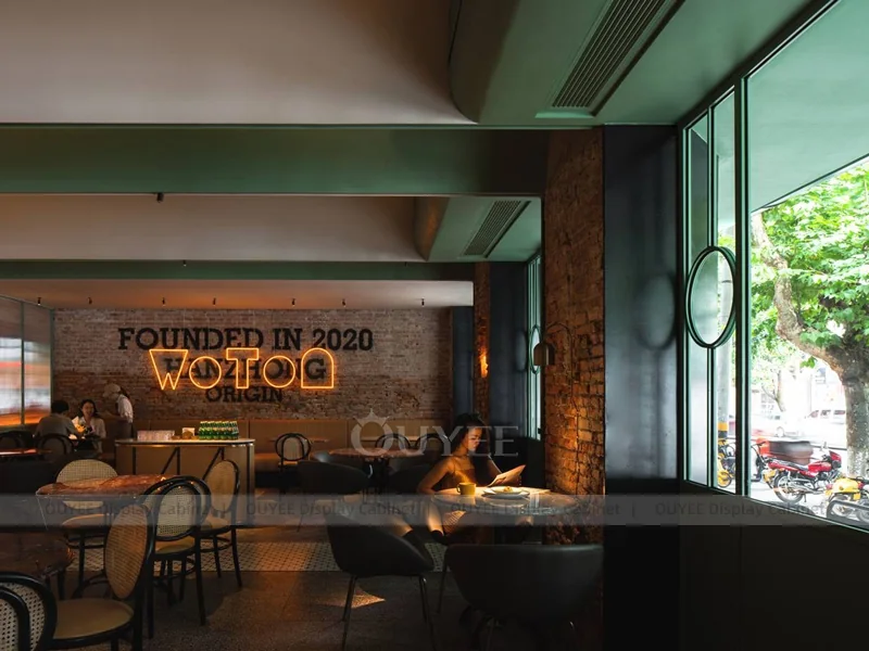 OUYEE supports coffee counter design, shop drawings, material selection, manufacturing, packing, and export delivery. We can customize the fixture according to your brand color, logo, store size, electrical planning, and installation requirements.