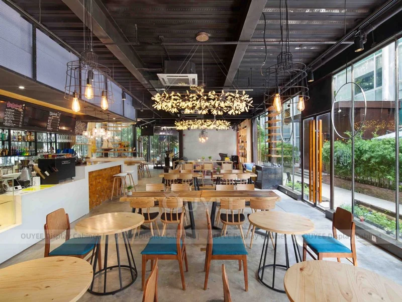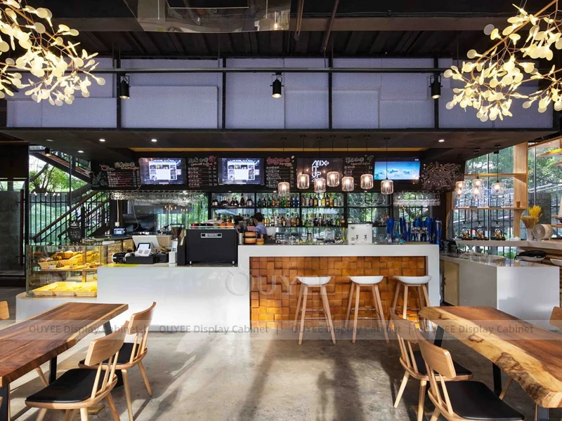 OUYEE supports coffee counter design, shop drawings, material selection, manufacturing, packing, and export delivery. We can customize the fixture according to your brand color, logo, store size, electrical planning, and installation requirements.
