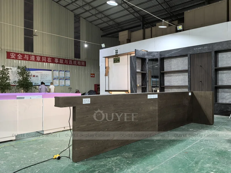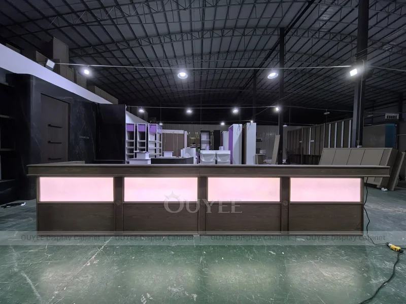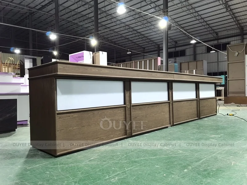 OUYEE supports coffee counter design, shop drawings, material selection, manufacturing, packing, and export delivery. We can customize the fixture according to your brand color, logo, store size, electrical planning, and installation requirements.