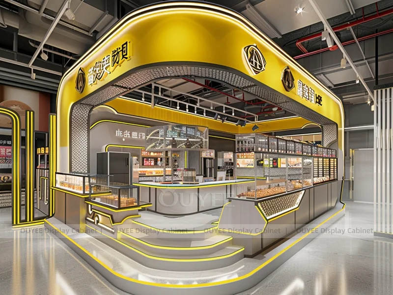 OUYEE supports coffee counter design, shop drawings, material selection, manufacturing, packing, and export delivery. We can customize the fixture according to your brand color, logo, store size, electrical planning, and installation requirements.