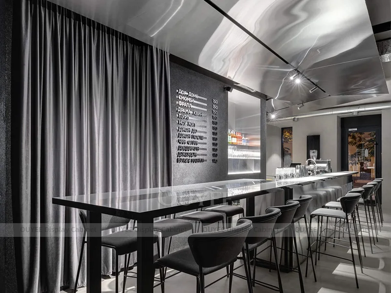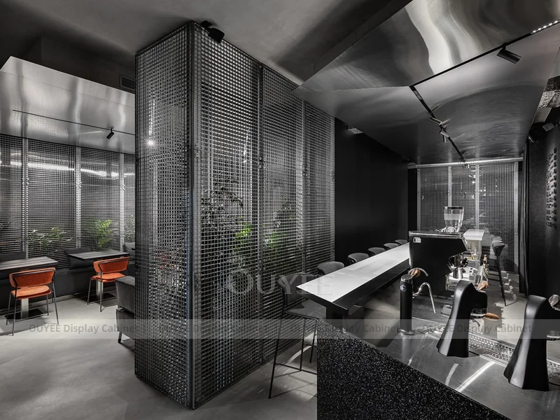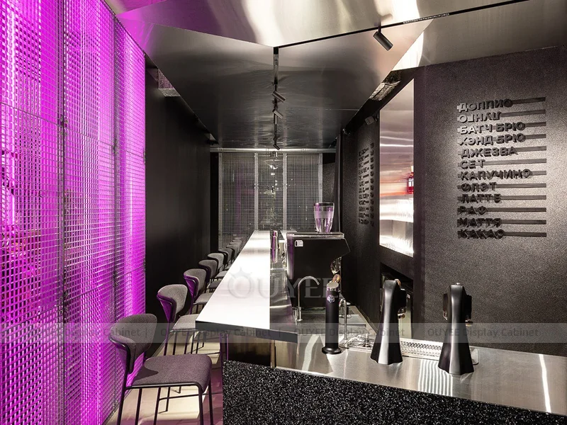 OUYEE supports coffee counter design, shop drawings, material selection, manufacturing, packing, and export delivery. We can customize the fixture according to your brand color, logo, store size, electrical planning, and installation requirements.