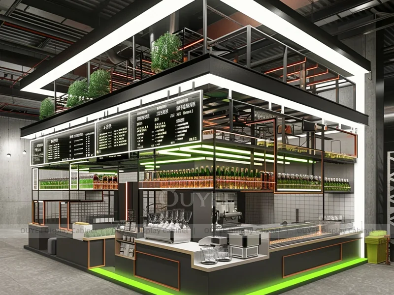 OUYEE supports coffee counter design, shop drawings, material selection, manufacturing, packing, and export delivery. We can customize the fixture according to your brand color, logo, store size, electrical planning, and installation requirements.