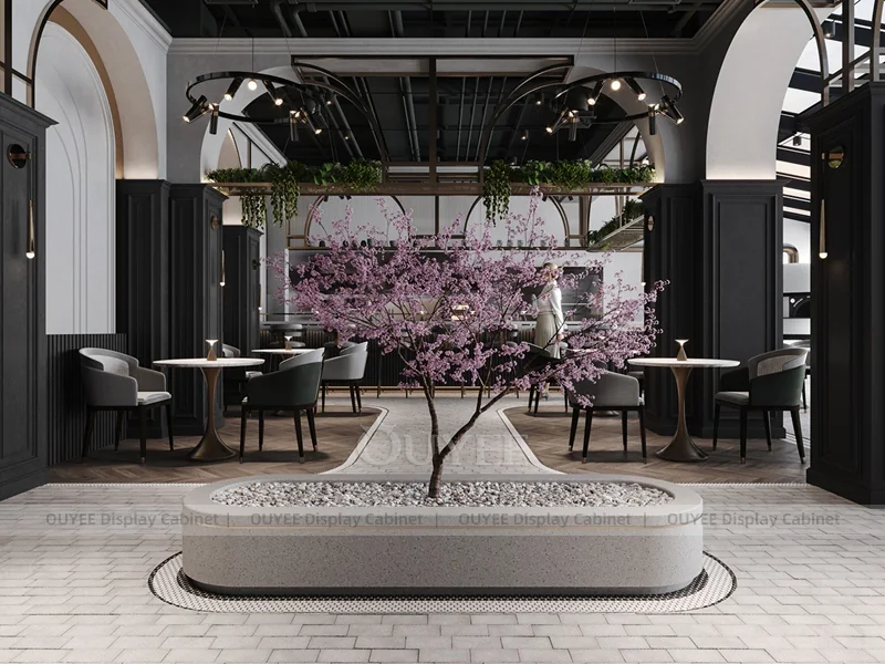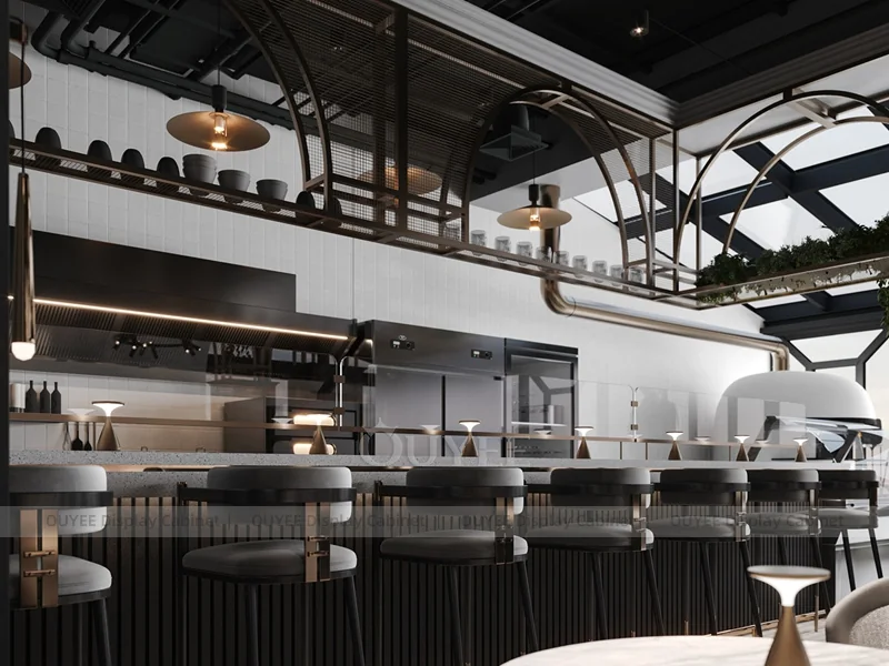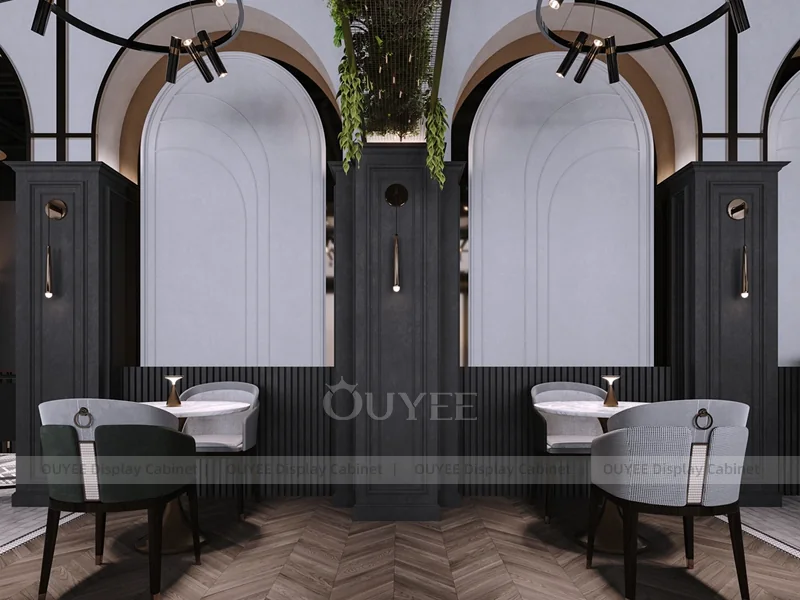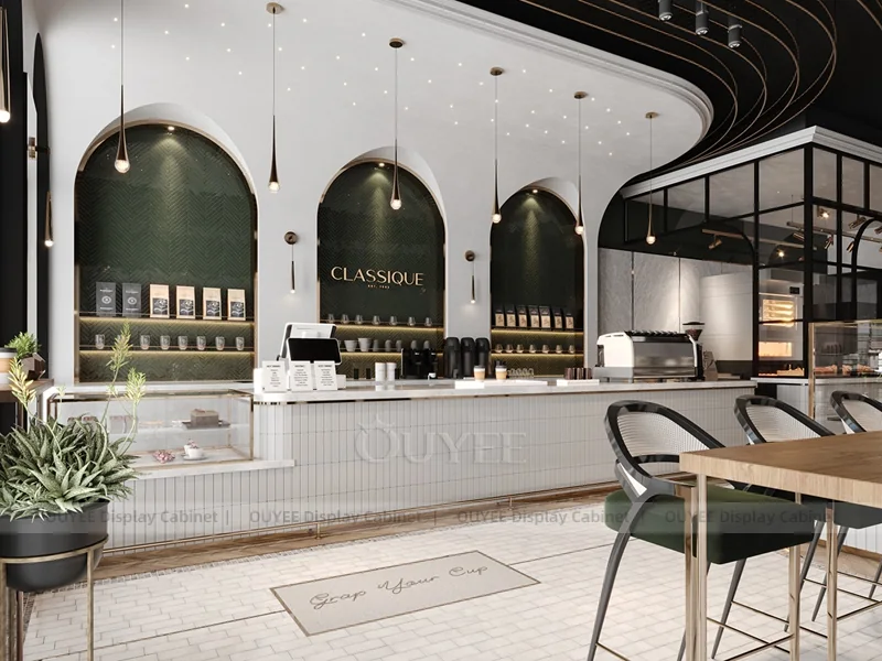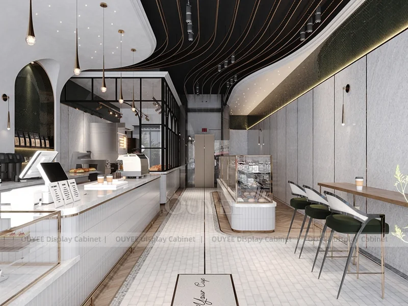 OUYEE supports coffee counter design, shop drawings, material selection, manufacturing, packing, and export delivery. We can customize the fixture according to your brand color, logo, store size, electrical planning, and installation requirements.