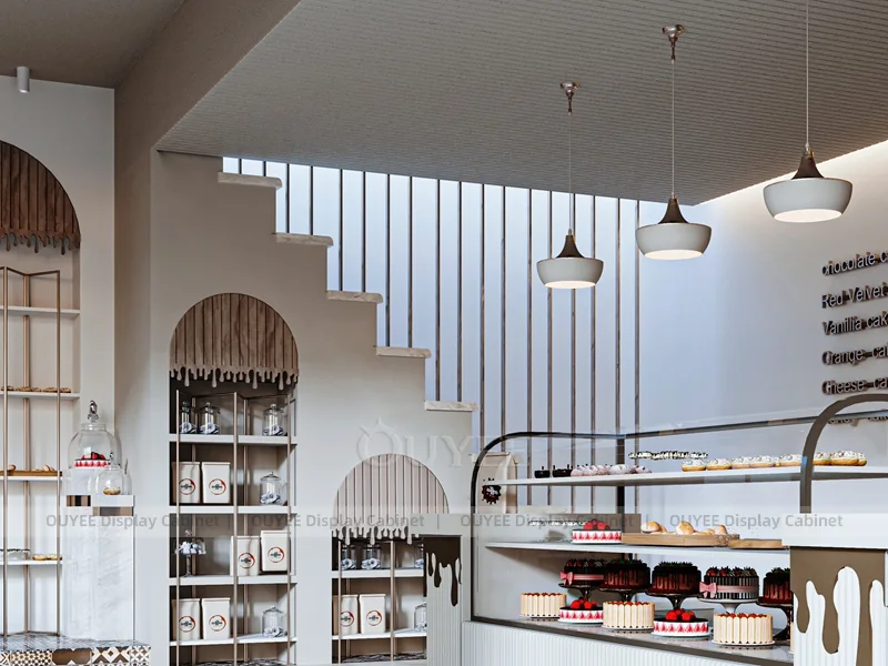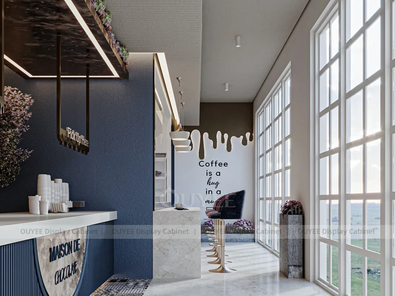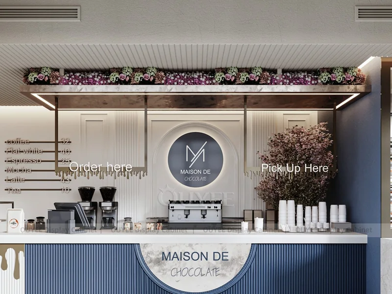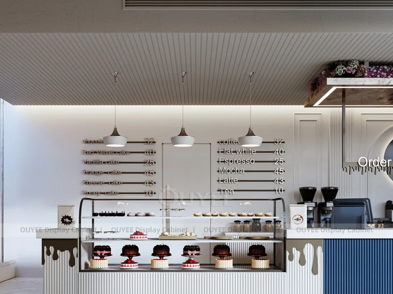 OUYEE supports coffee counter design, shop drawings, material selection, manufacturing, packing, and export delivery. We can customize the fixture according to your brand color, logo, store size, electrical planning, and installation requirements.