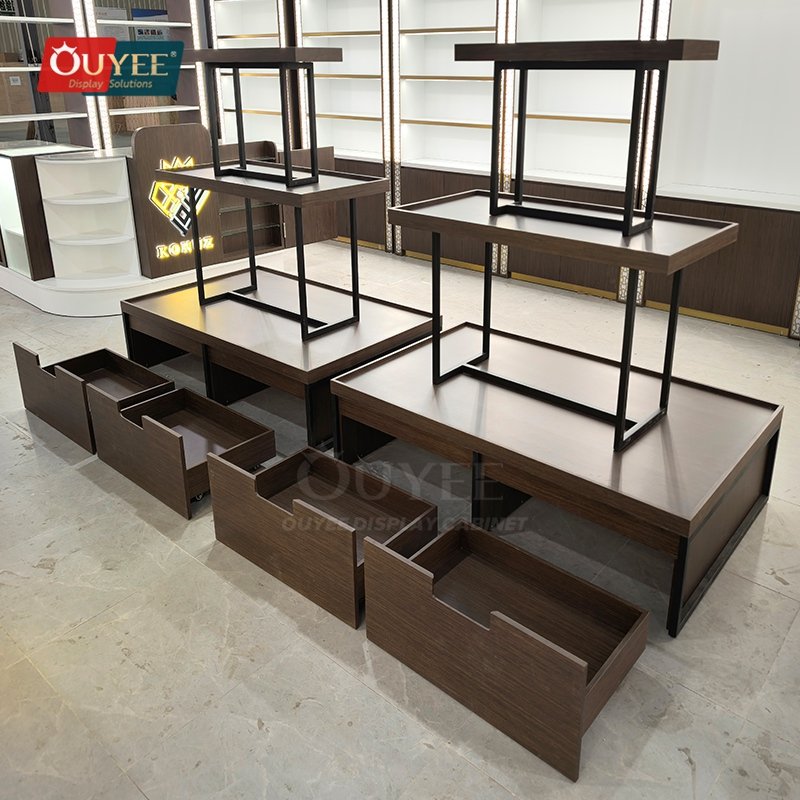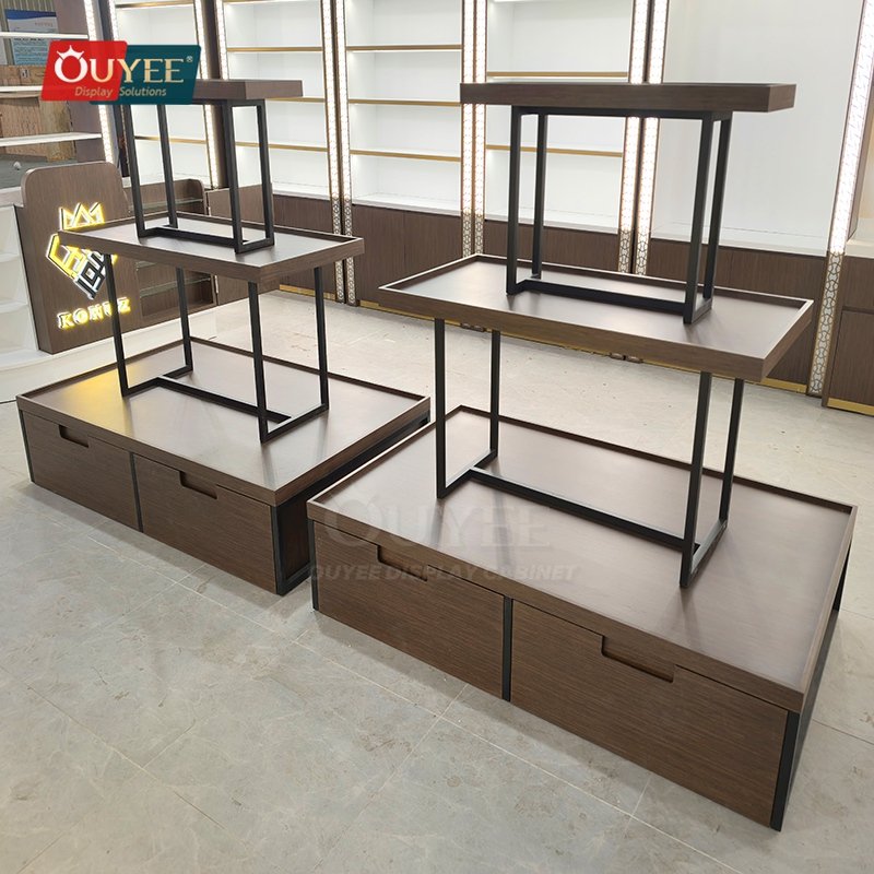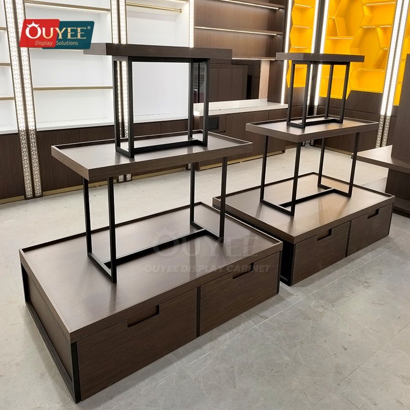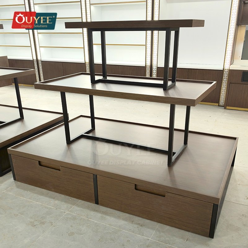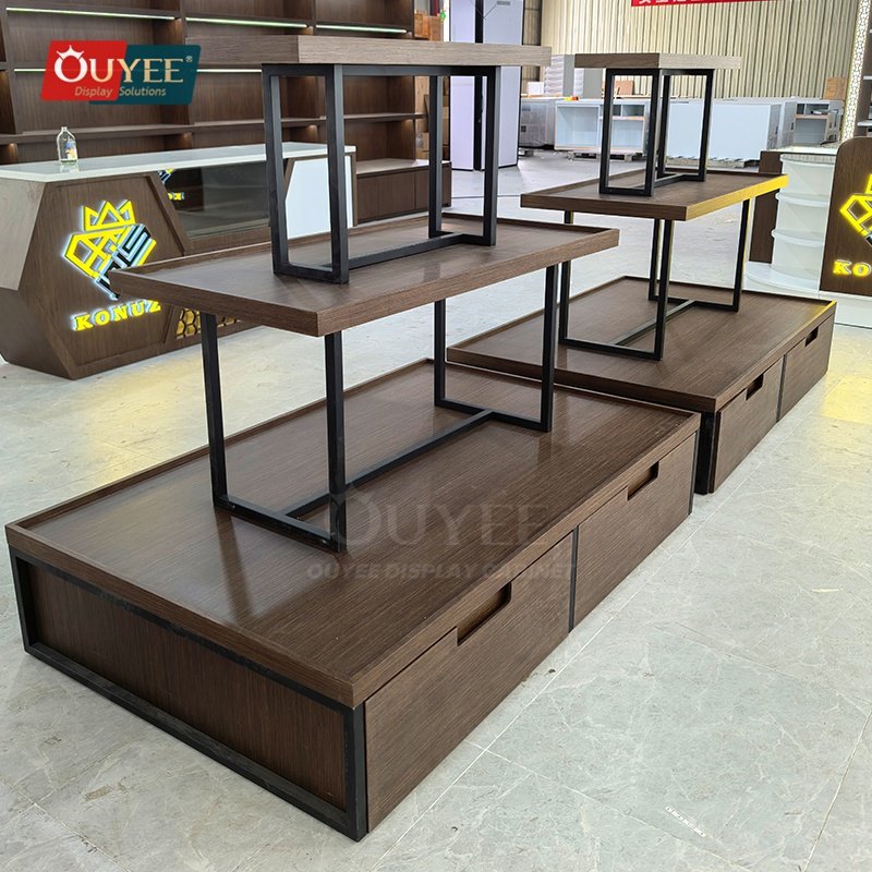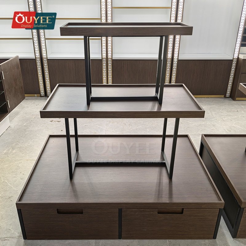Built for specialty retailers, boutiques, branded chain stores, and high-traffic merchandising environments, the Brown and Black Tiered Table Display Stand Set gives retailers a more structured way to present merchandise, guide shopper attention, and keep display updates efficient across changing collections. For similar fixture references, you can visit our display shelves page, browse more store shelving displays, and review OUYEE production support on the manufacturing and materials pages.