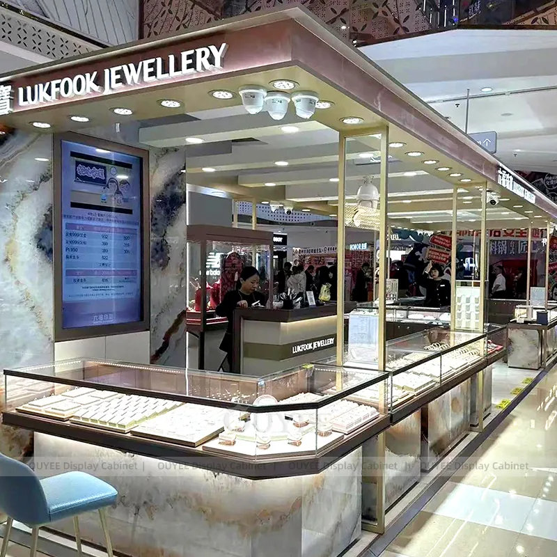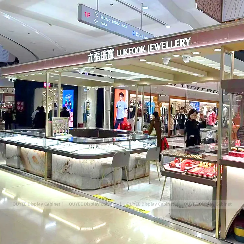 OUYEE can produce this model with tempered glass, lacquered display panels, and custom jewelry fixture joinery. We can adjust dimensions, counter heights, storage details, showcase proportions, branding areas, and clean white finishes so the project fits the store concept, SKU mix, and floor plan. Related inspiration is available across jewelry shop displays, display cabinet and our store fixture manufacturing service.