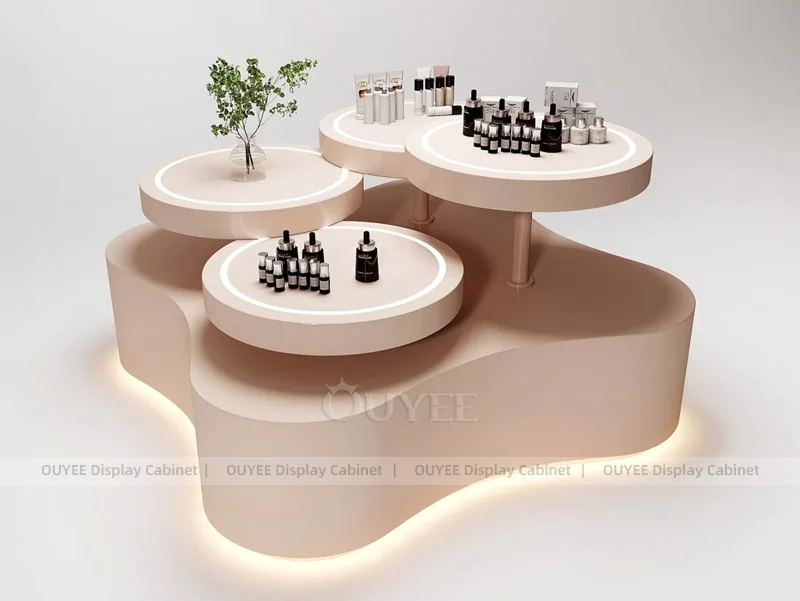 OUYEE develops the Cream Beauty Island Display for beauty retailers that need clearer product zoning, stronger brand presentation, and reliable fixture production for commercial store projects.
