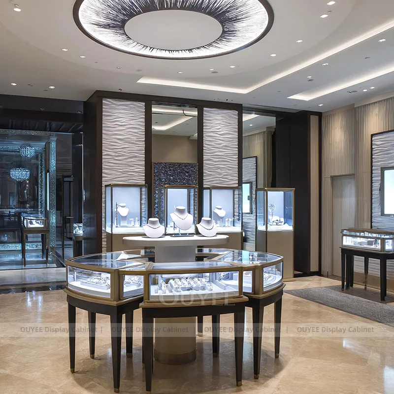 Style: Custom jewelry display system with secure showcases, luxury finishes, and boutique-ready layout planning