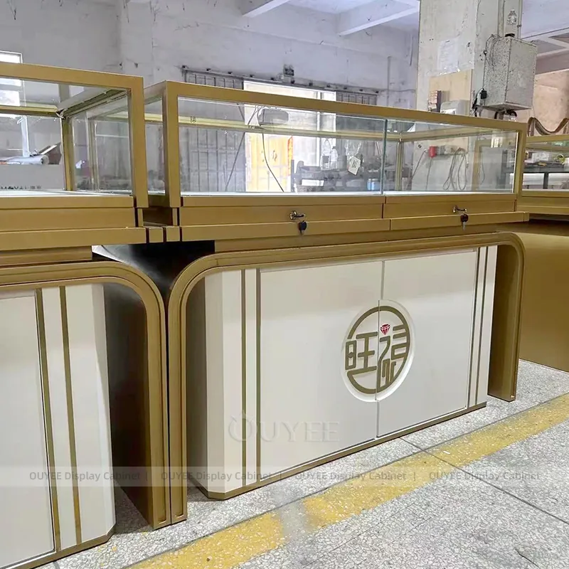 OUYEE can produce this model with tempered glass, lacquered display panels, and custom jewelry fixture joinery. We can adjust dimensions, counter heights, storage details, showcase proportions, branding areas, and deep black finishes so the project fits the store concept, SKU mix, and floor plan. Related inspiration is available across jewelry shop displays, display cabinet and our store fixture manufacturing service.