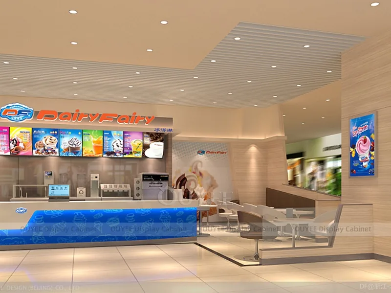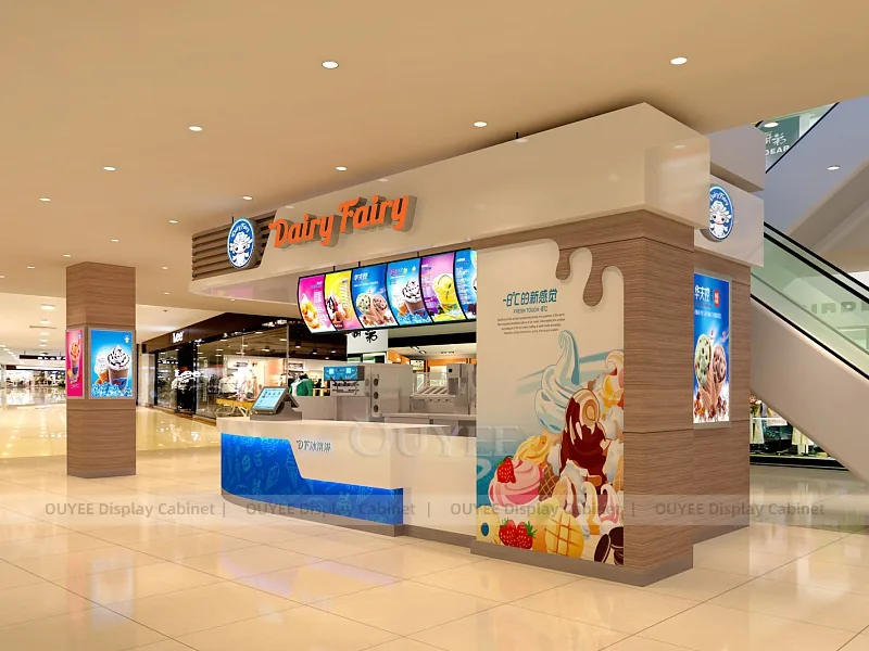 This product is suitable for milk tea dessert shops, gelato counters, ice cream kiosks, and beverage-and-snack retail spaces. It is a practical choice for new bubble tea shop openings, mall kiosk projects, cafe remodels, dessert shop counters, and franchise drink-store rollouts from a custom store fixture manufacturer.