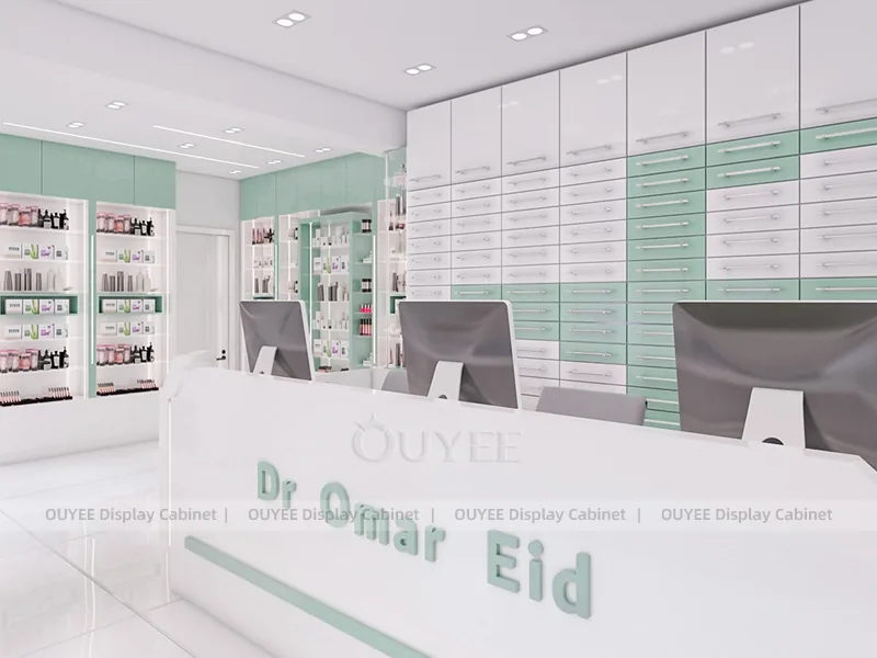 OUYEE develops the Dermatology Retail Counter Display for beauty retailers that need clearer product zoning, stronger brand presentation, and reliable fixture production for commercial store projects.