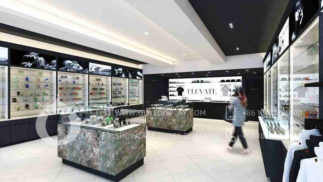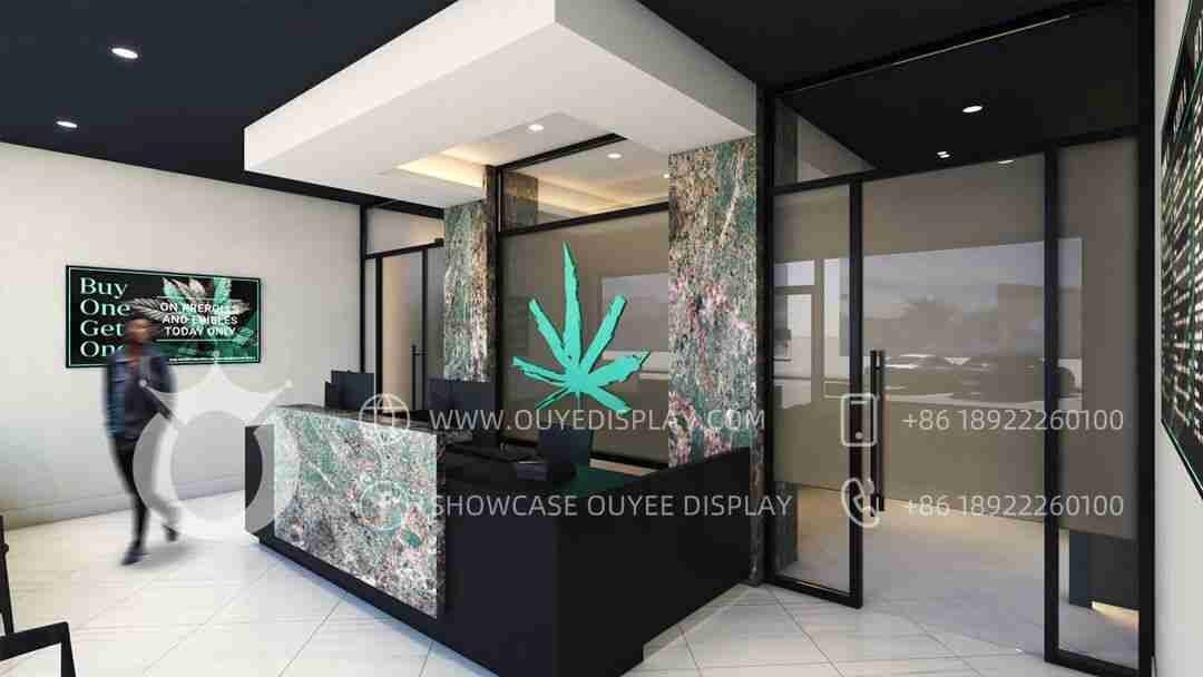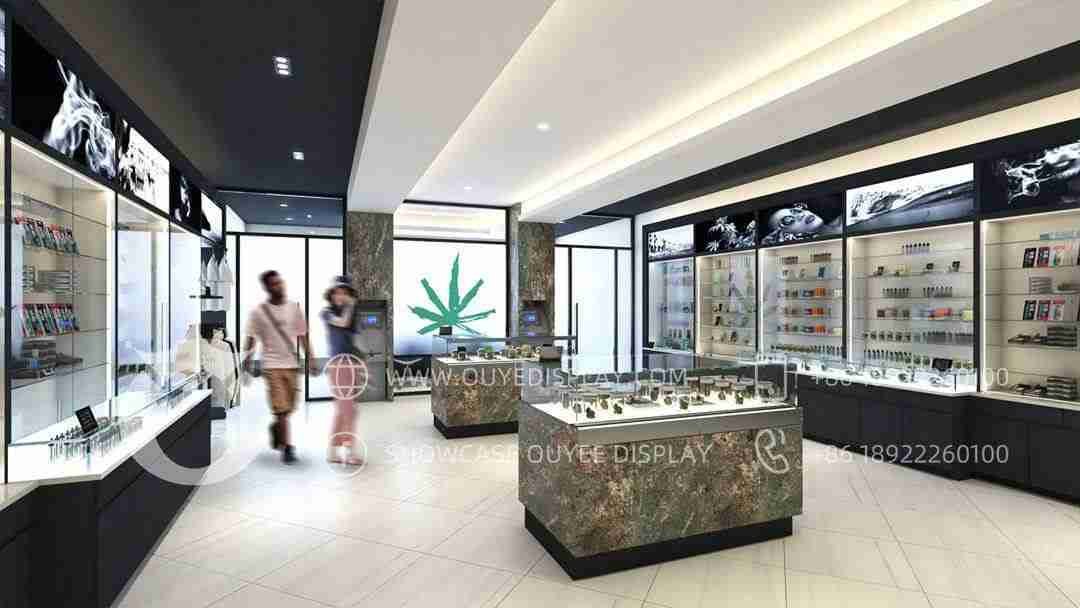 Ouyee Display provide different kinds of shop interior design, like dispensary supplies store, cannabis display counter, vape shop showcase, cigarette display shelf, tobacco shop design.