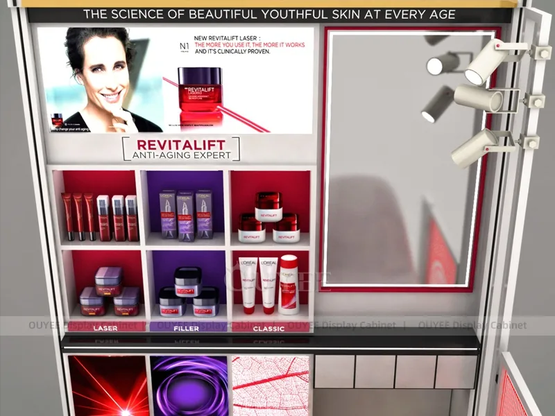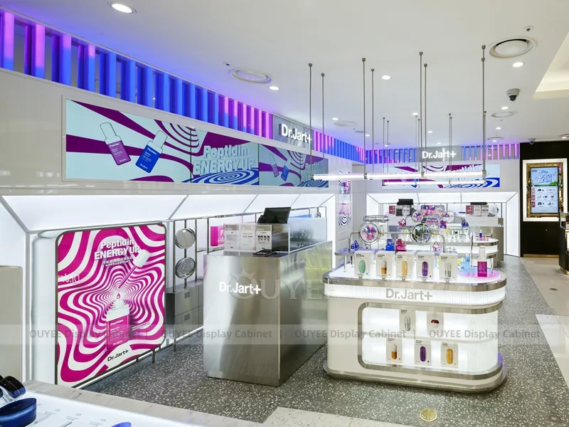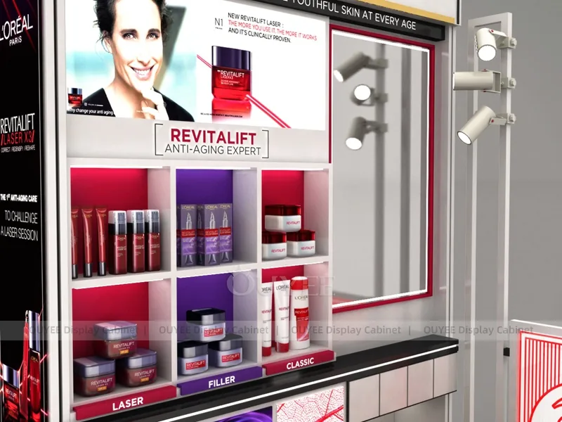 OUYEE develops the Dr Jart Red Wall Display for beauty retailers that need clearer product zoning, stronger brand presentation, and reliable fixture production for commercial store projects.