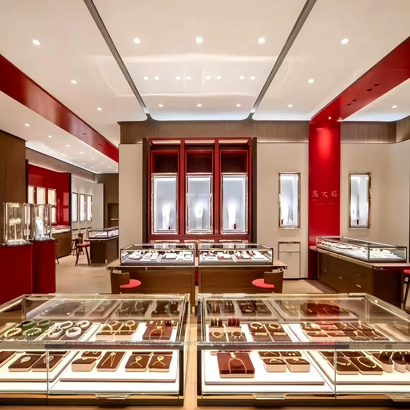 Style: Custom jewelry display system with secure showcases, luxury finishes, and boutique-ready layout planning