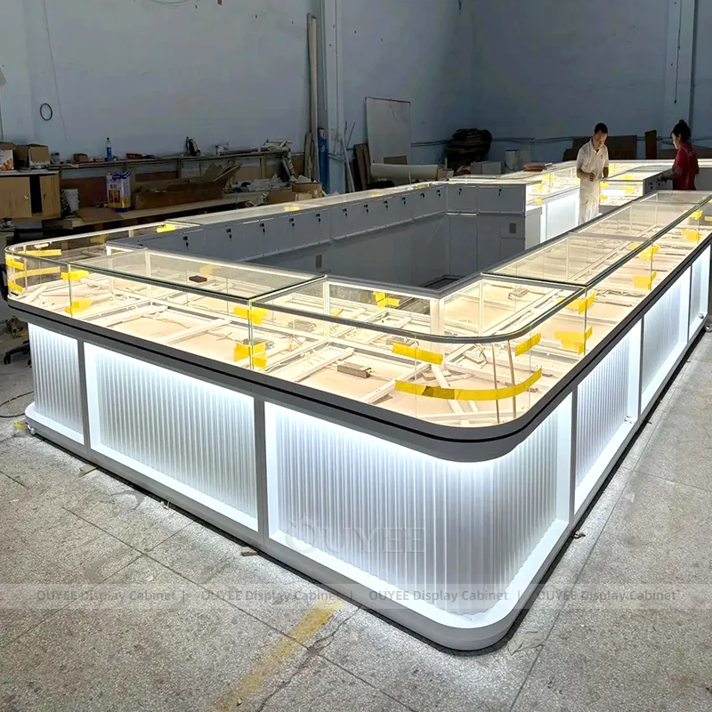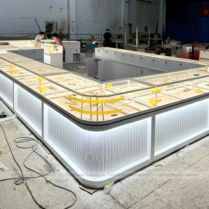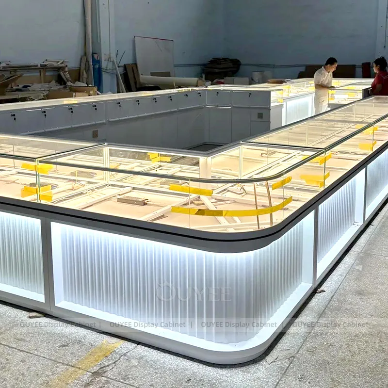 This configuration works well for fine jewelry stores, mall boutique islands, luxury watch counters, and premium showroom layouts. It is suitable for projects that need elegant display security, premium lighting atmosphere, and a coordinated jewelry presentation language across the full boutique.