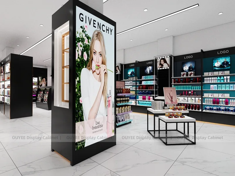 OUYEE develops the Givenchy Glass Table Display for beauty retailers that need clearer product zoning, stronger brand presentation, and reliable fixture production for commercial store projects.