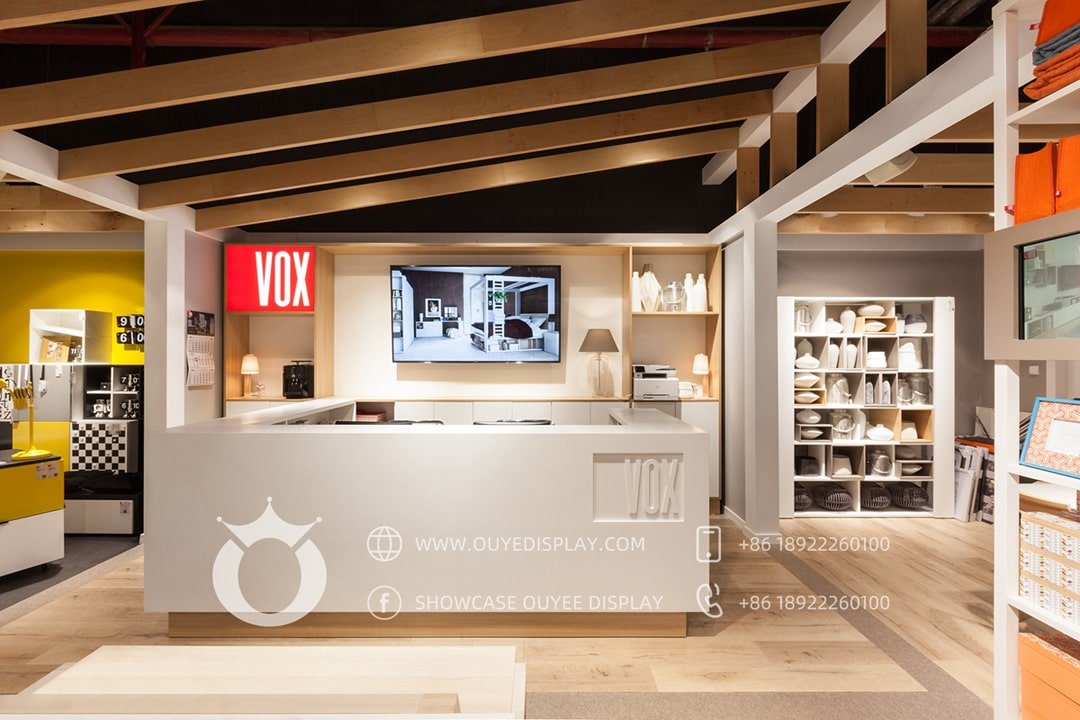 We will install wires and outlet on each display furniture , and send you Circuit wiring diagram, you will need to hire a professional electrician connect power of display furniture to the store electric box