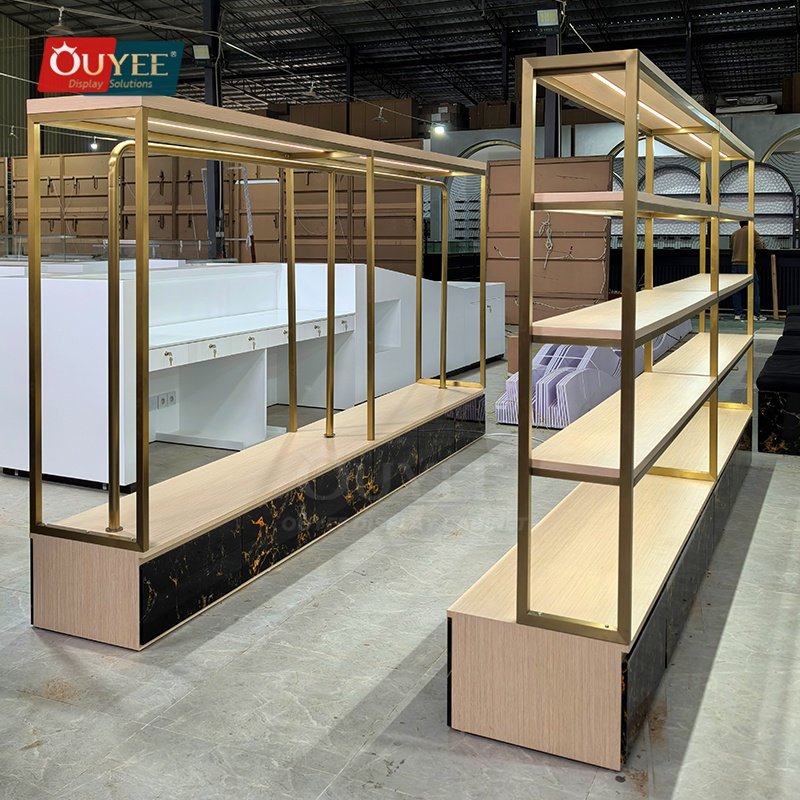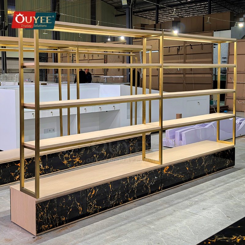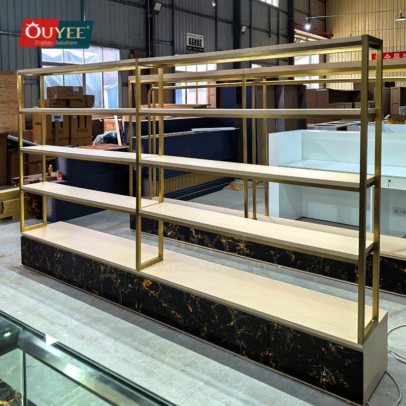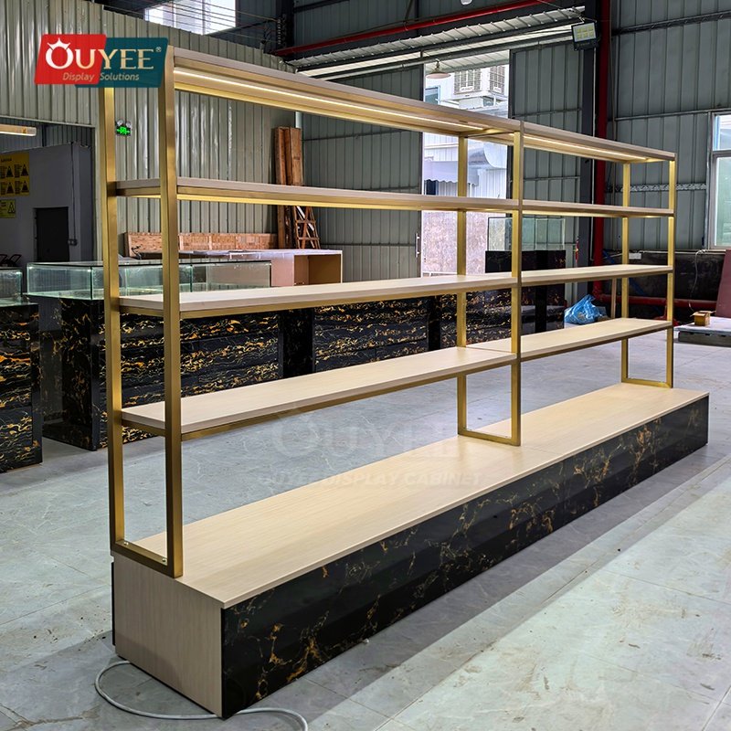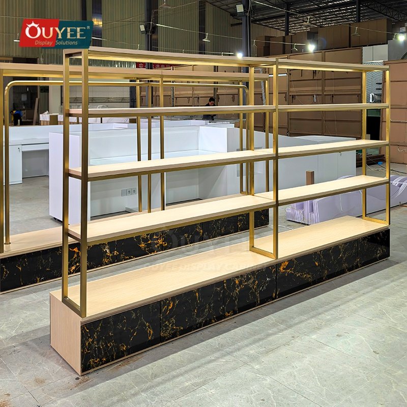 OUYEE develops Gold Freestanding Tiered Display Rack for luxury boutiques, premium cosmetic stores, jewelry counters, and branded mall concepts. This display rack supports cleaner merchandising, stronger product focus, and flexible custom production for stores that need a more deliberate fixture language. For similar fixture references, you can visit our display shelves page, browse more store shelving displays, and review OUYEE production support on the manufacturing and materials pages.