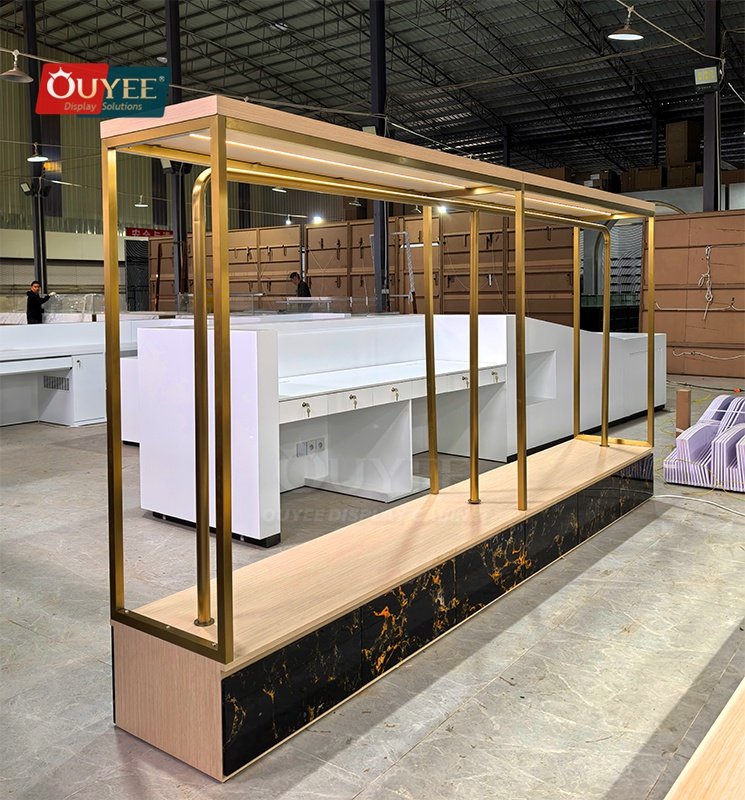This model is well suited to luxury boutiques, premium cosmetic stores, jewelry counters, and branded mall concepts. It supports projects that need a balance between presentation quality, day-to-day usability, and flexible store planning. It can also be combined with display shelves and broader retail store display planning where consistency, category clarity, and scalable fixture packages are priorities.