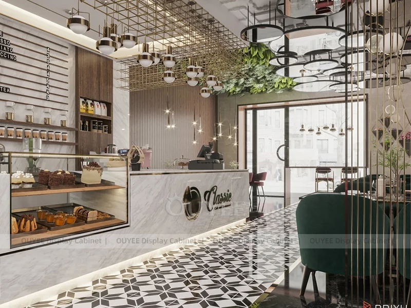 OUYEE supports coffee counter design, shop drawings, material selection, manufacturing, packing, and export delivery. We can customize the fixture according to your brand color, logo, store size, electrical planning, and installation requirements.