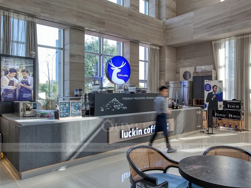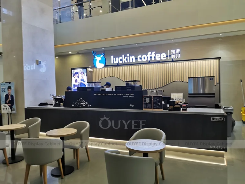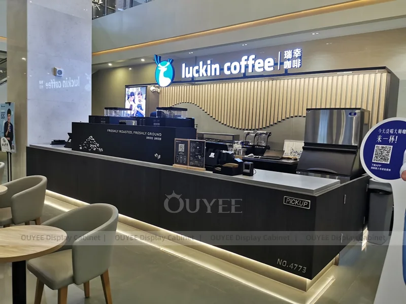OUYEE supports coffee counter design, shop drawings, material selection, manufacturing, packing, and export delivery. We can customize the fixture according to your brand color, logo, store size, electrical planning, and installation requirements.