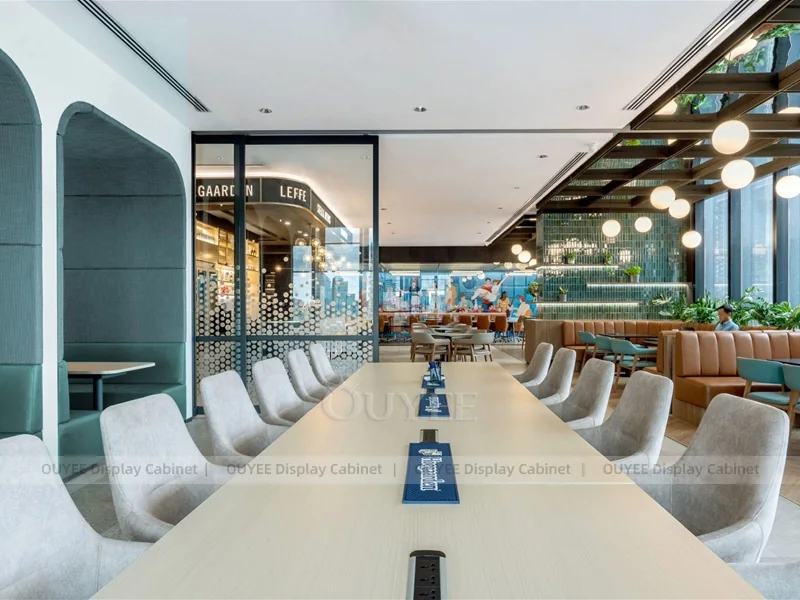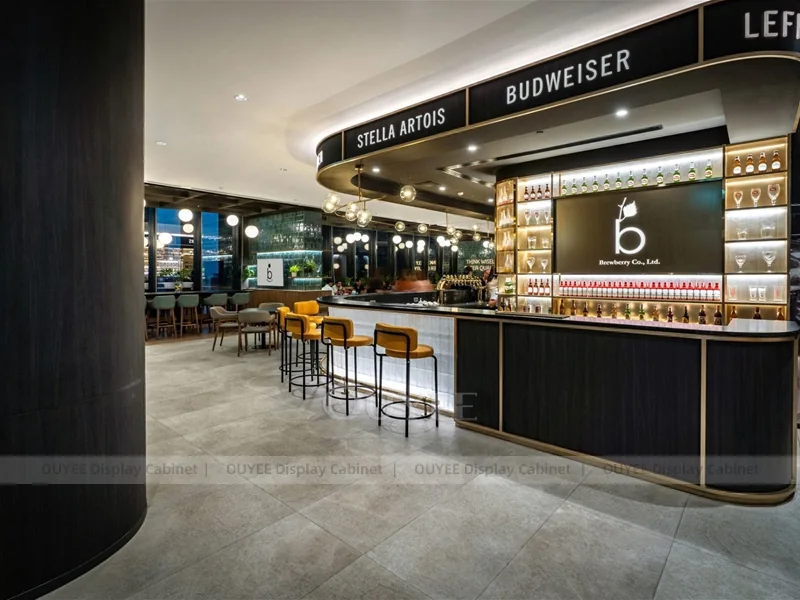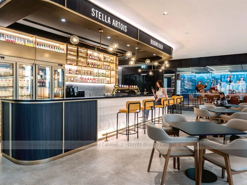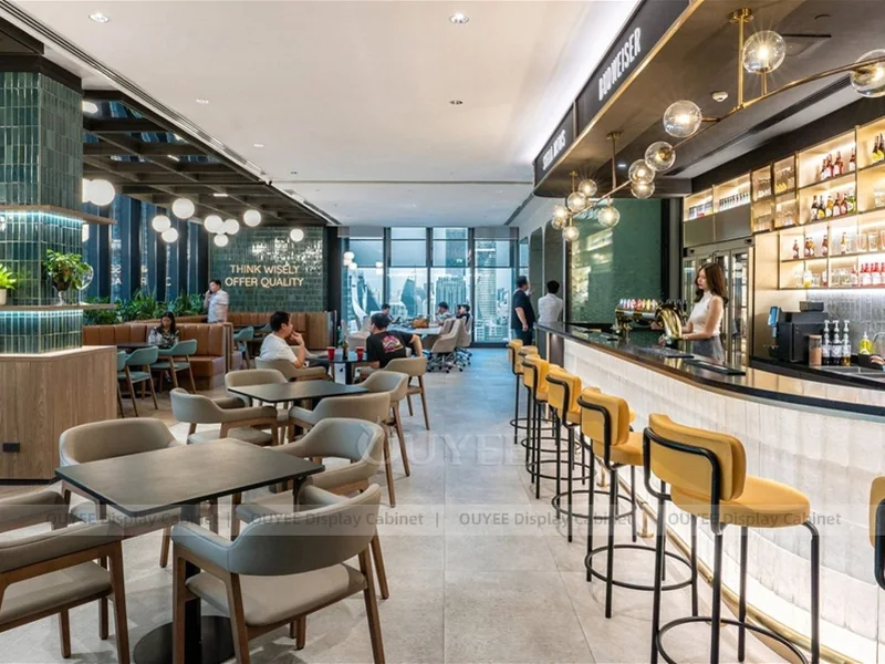 OUYEE supports coffee counter design, shop drawings, material selection, manufacturing, packing, and export delivery. We can customize the fixture according to your brand color, logo, store size, electrical planning, and installation requirements.