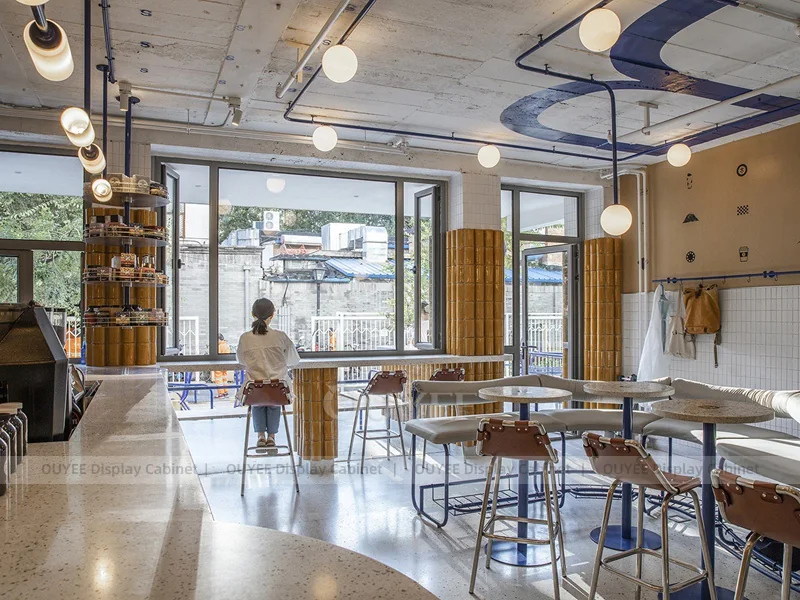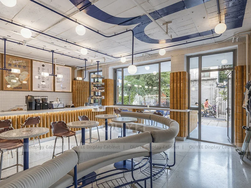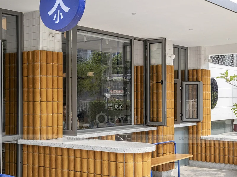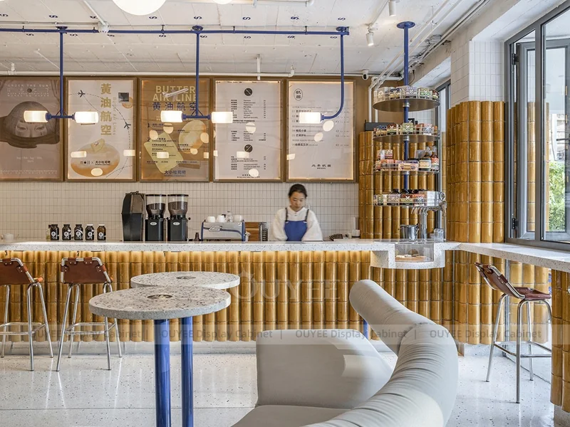 OUYEE supports coffee counter design, shop drawings, material selection, manufacturing, packing, and export delivery. We can customize the fixture according to your brand color, logo, store size, electrical planning, and installation requirements.