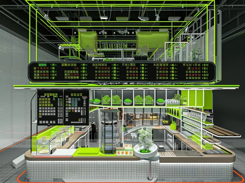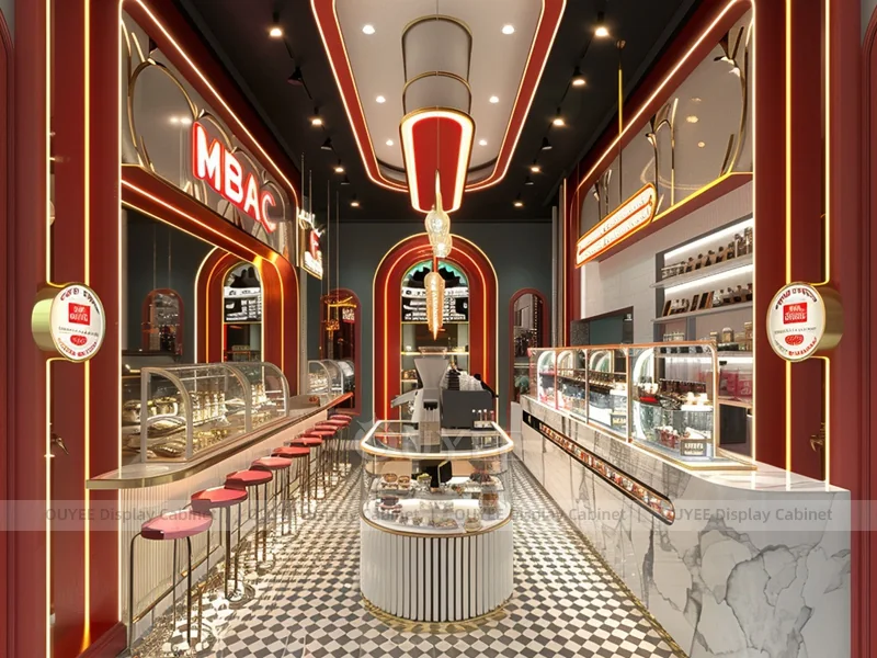 OUYEE supports coffee counter design, shop drawings, material selection, manufacturing, packing, and export delivery. We can customize the fixture according to your brand color, logo, store size, electrical planning, and installation requirements.