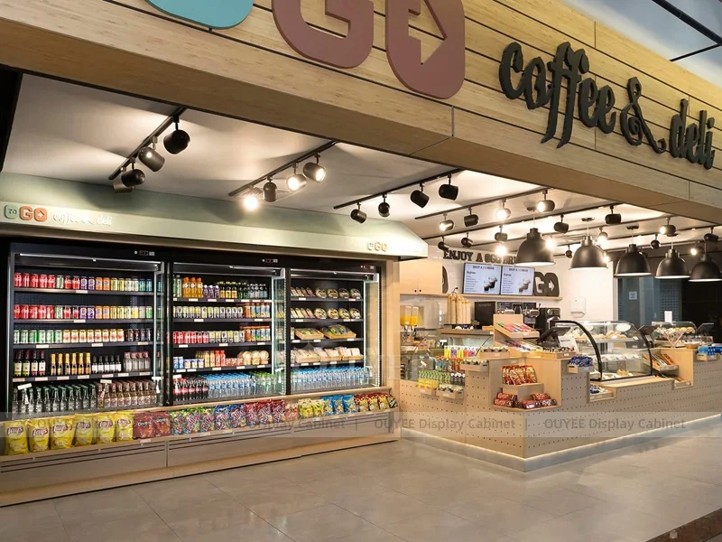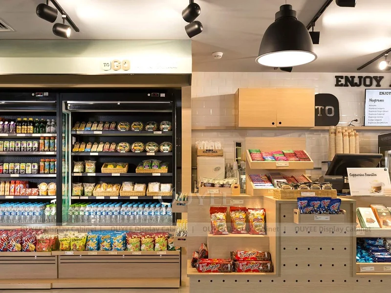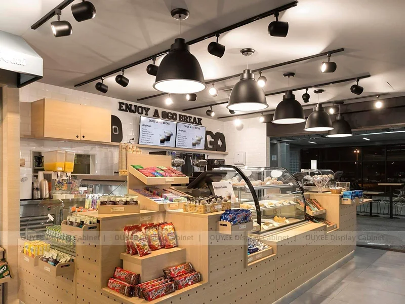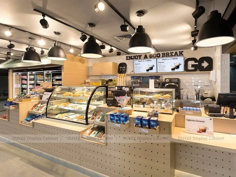 OUYEE supports coffee counter design, shop drawings, material selection, manufacturing, packing, and export delivery. We can customize the fixture according to your brand color, logo, store size, electrical planning, and installation requirements.