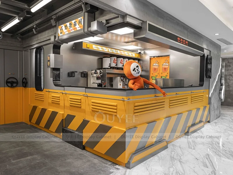 OUYEE supports coffee counter design, shop drawings, material selection, manufacturing, packing, and export delivery. We can customize the fixture according to your brand color, logo, store size, electrical planning, and installation requirements.