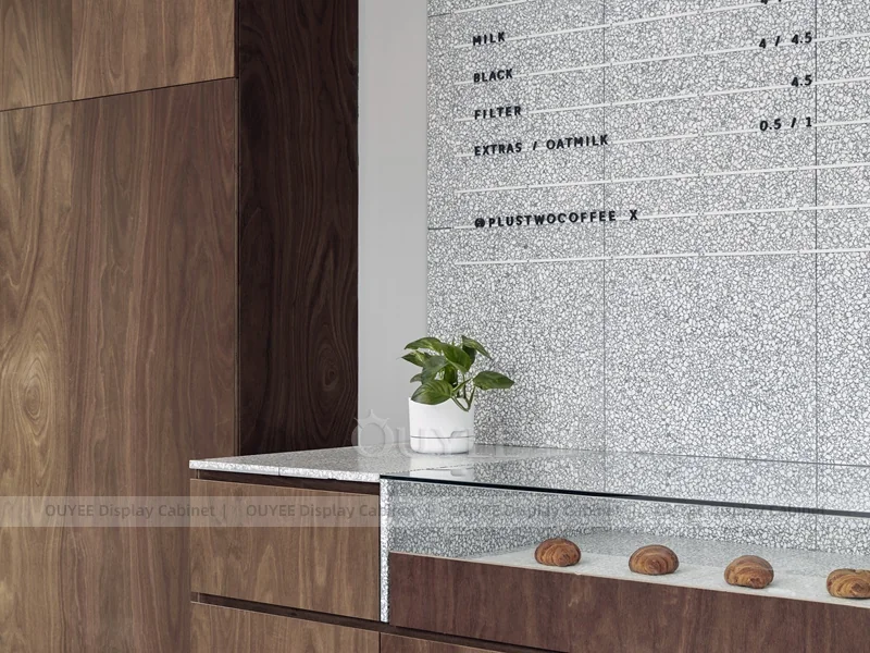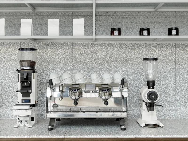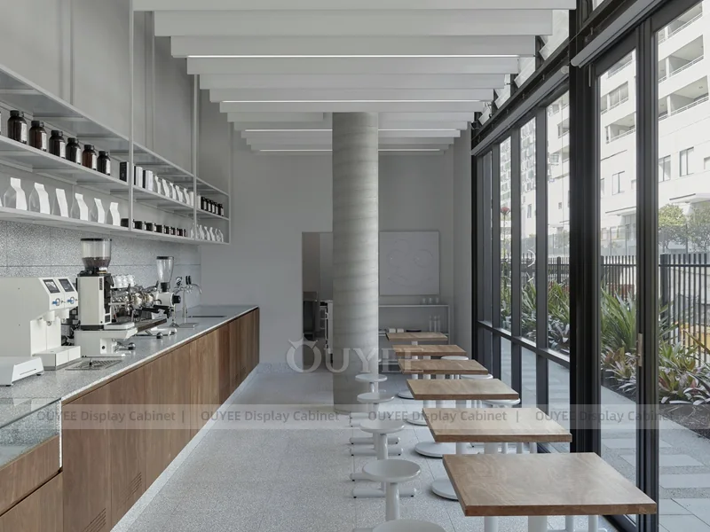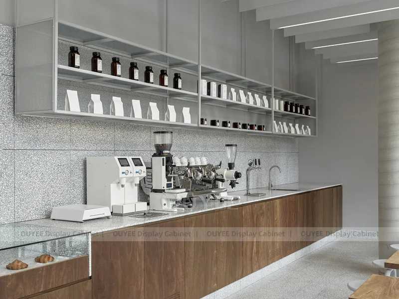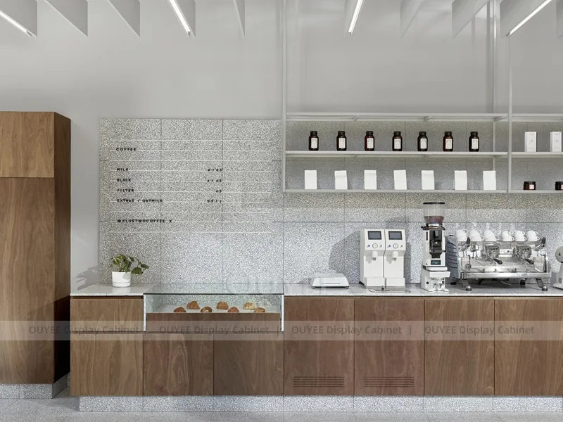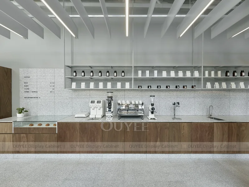 OUYEE supports coffee counter design, shop drawings, material selection, manufacturing, packing, and export delivery. We can customize the fixture according to your brand color, logo, store size, electrical planning, and installation requirements.