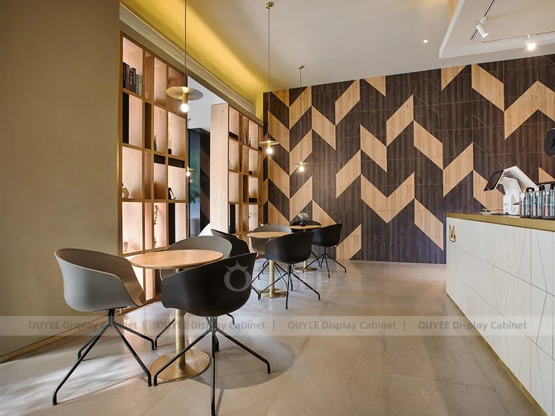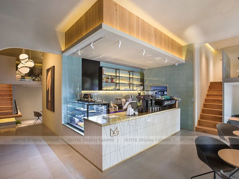OUYEE supports coffee counter design, shop drawings, material selection, manufacturing, packing, and export delivery. We can customize the fixture according to your brand color, logo, store size, electrical planning, and installation requirements.
