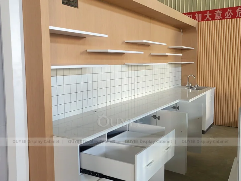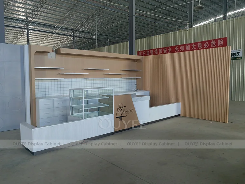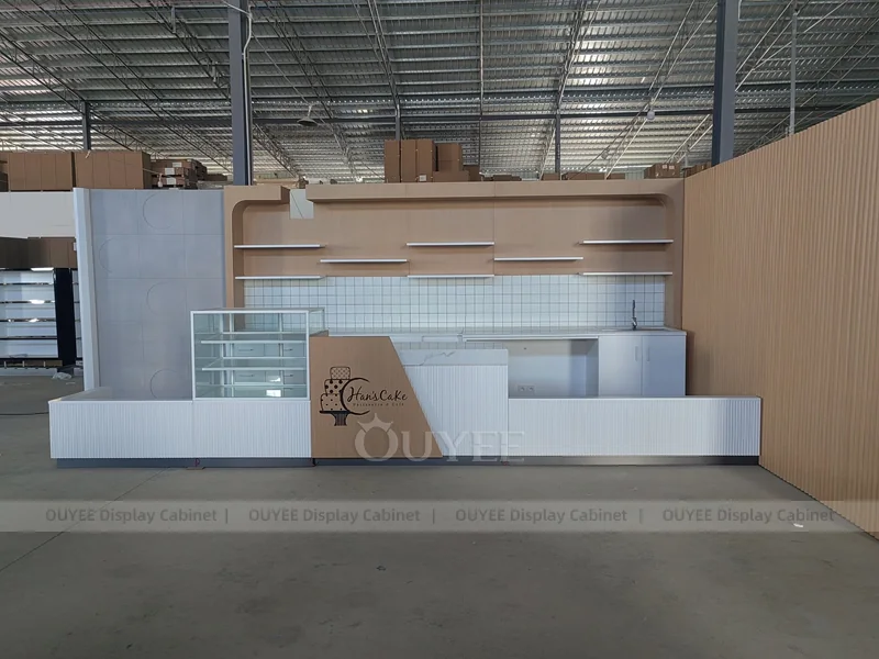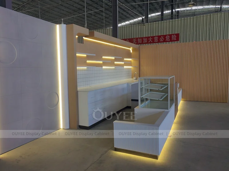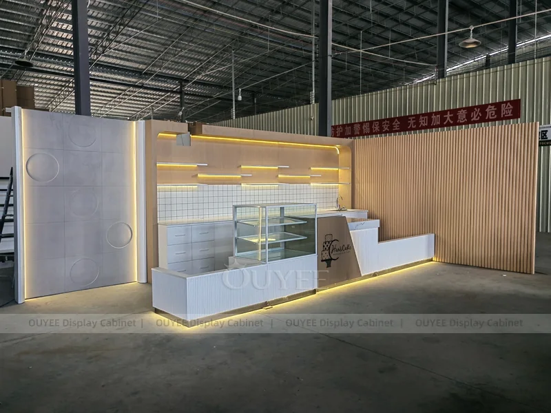 OUYEE supports coffee counter design, shop drawings, material selection, manufacturing, packing, and export delivery. We can customize the fixture according to your brand color, logo, store size, electrical planning, and installation requirements.