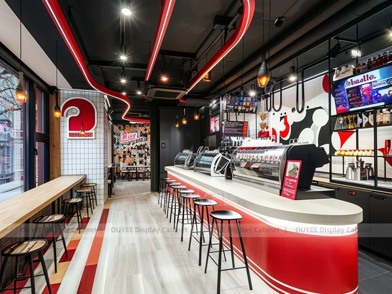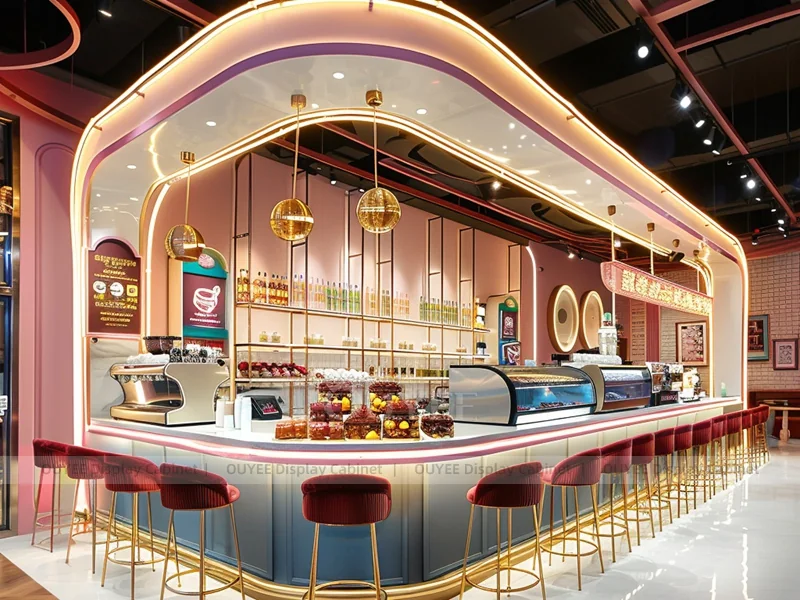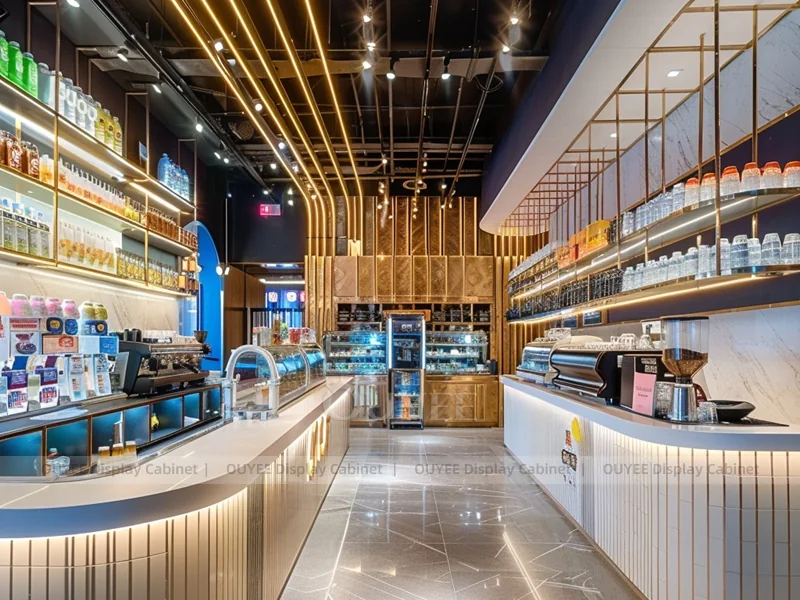 OUYEE supports coffee counter design, shop drawings, material selection, manufacturing, packing, and export delivery. We can customize the fixture according to your brand color, logo, store size, electrical planning, and installation requirements.