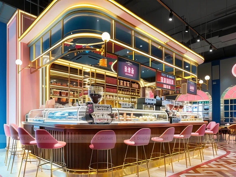 OUYEE supports coffee counter design, shop drawings, material selection, manufacturing, packing, and export delivery. We can customize the fixture according to your brand color, logo, store size, electrical planning, and installation requirements.