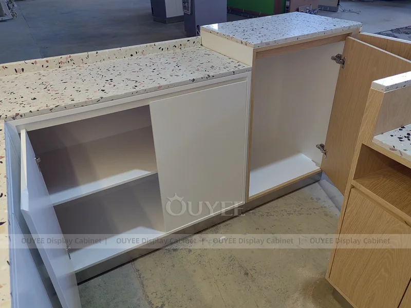 OUYEE supports coffee counter design, shop drawings, material selection, manufacturing, packing, and export delivery. We can customize the fixture according to your brand color, logo, store size, electrical planning, and installation requirements.