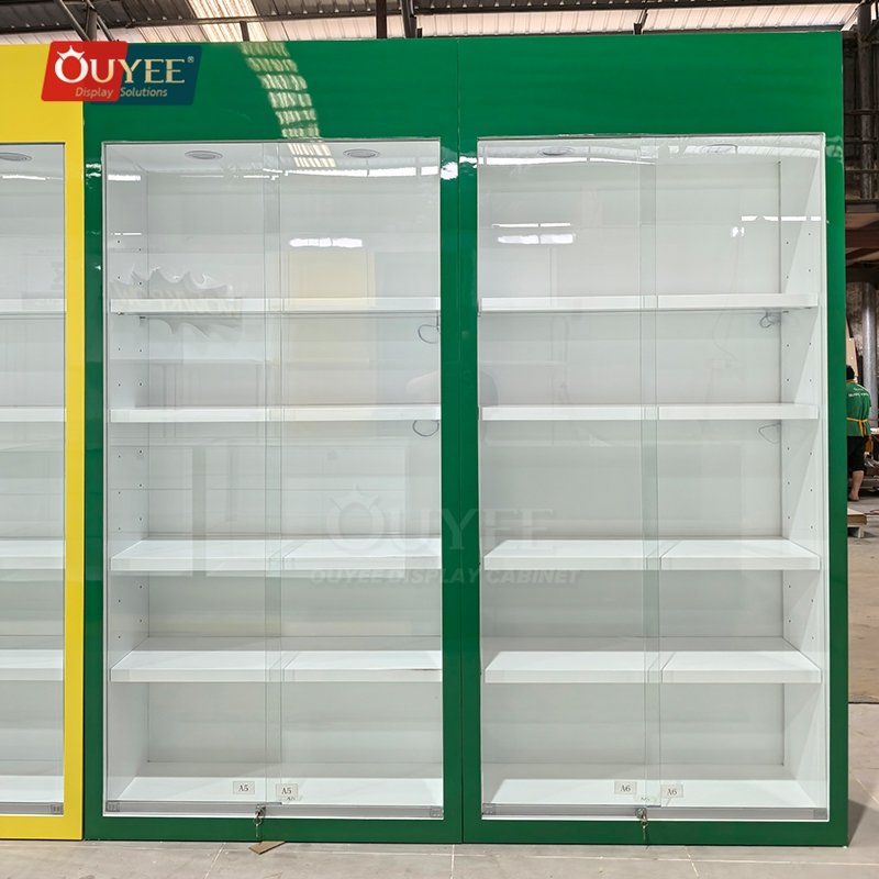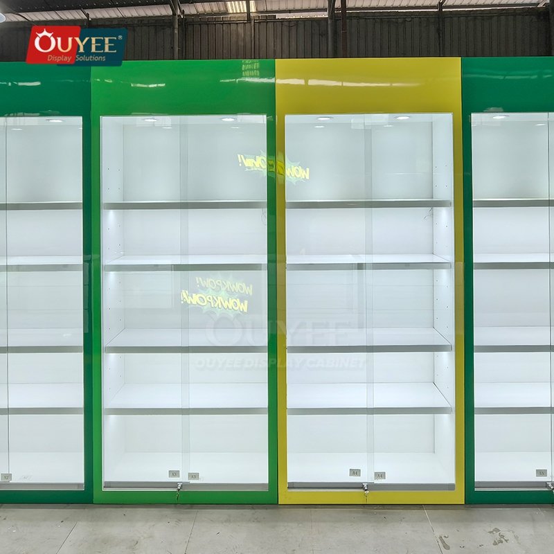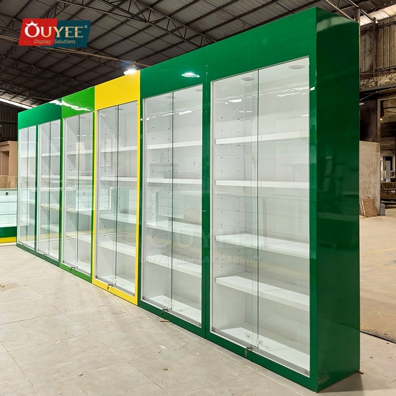 Built with commercial fixture panels, tempered glass, and durable structural supports, this custom display solution is made for long-term commercial use. OUYEE can adjust cabinet dimensions, shelf positions, lighting temperature, finish tones, storage modules, and logo details to match different retail concepts. If your project also needs related showcase ideas, you can browse our glass display cabinet and display cases pages for more references.
