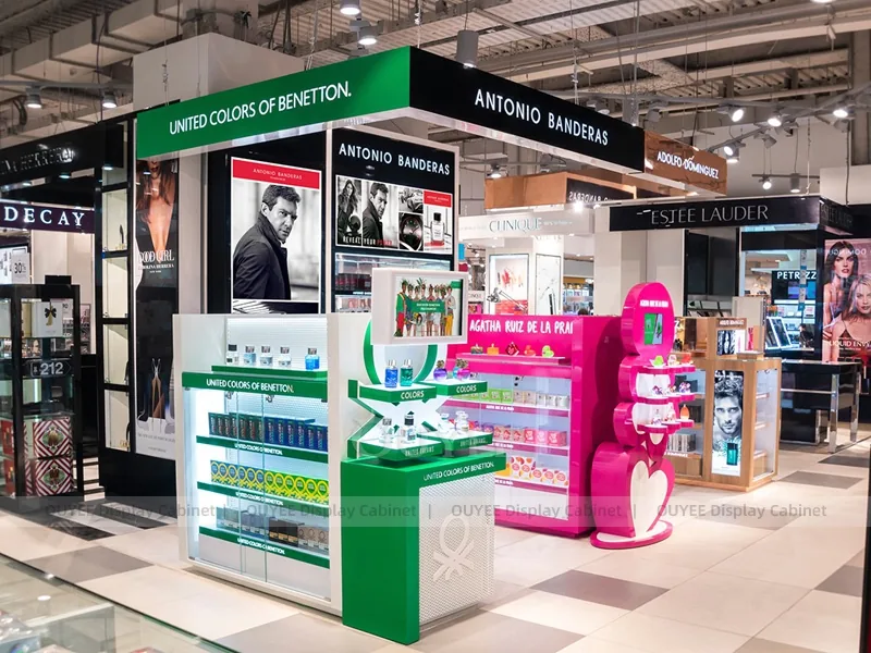OUYEE develops the Green Mascot Kiosk Display for beauty retailers that need clearer product zoning, stronger brand presentation, and reliable fixture production for commercial store projects.