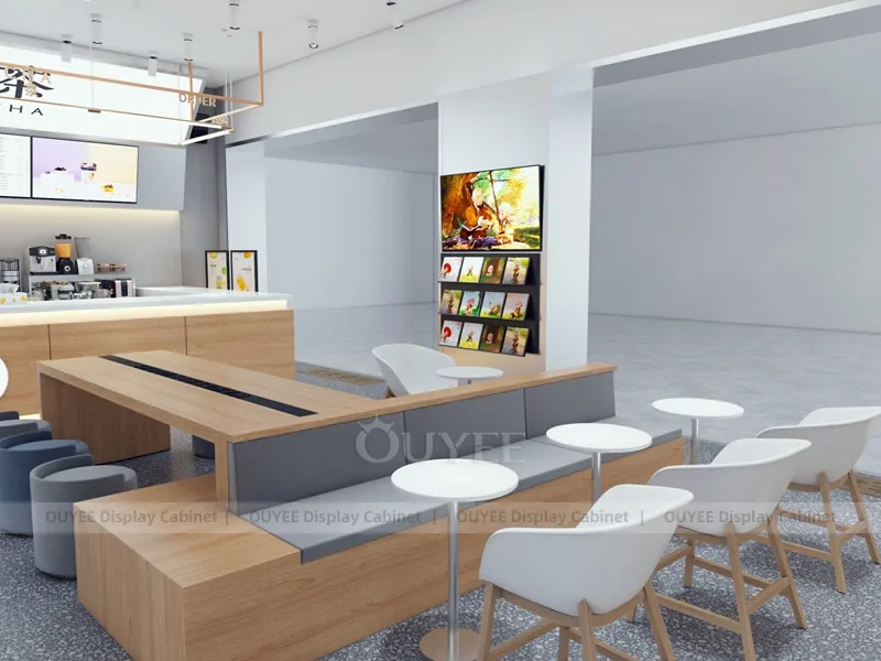 This product is suitable for bubble tea shops, milk tea service counters, juice bars, and beverage checkout areas. It is a practical choice for new bubble tea shop openings, mall kiosk projects, cafe remodels, dessert shop counters, and franchise drink-store rollouts from a custom store fixture manufacturer.